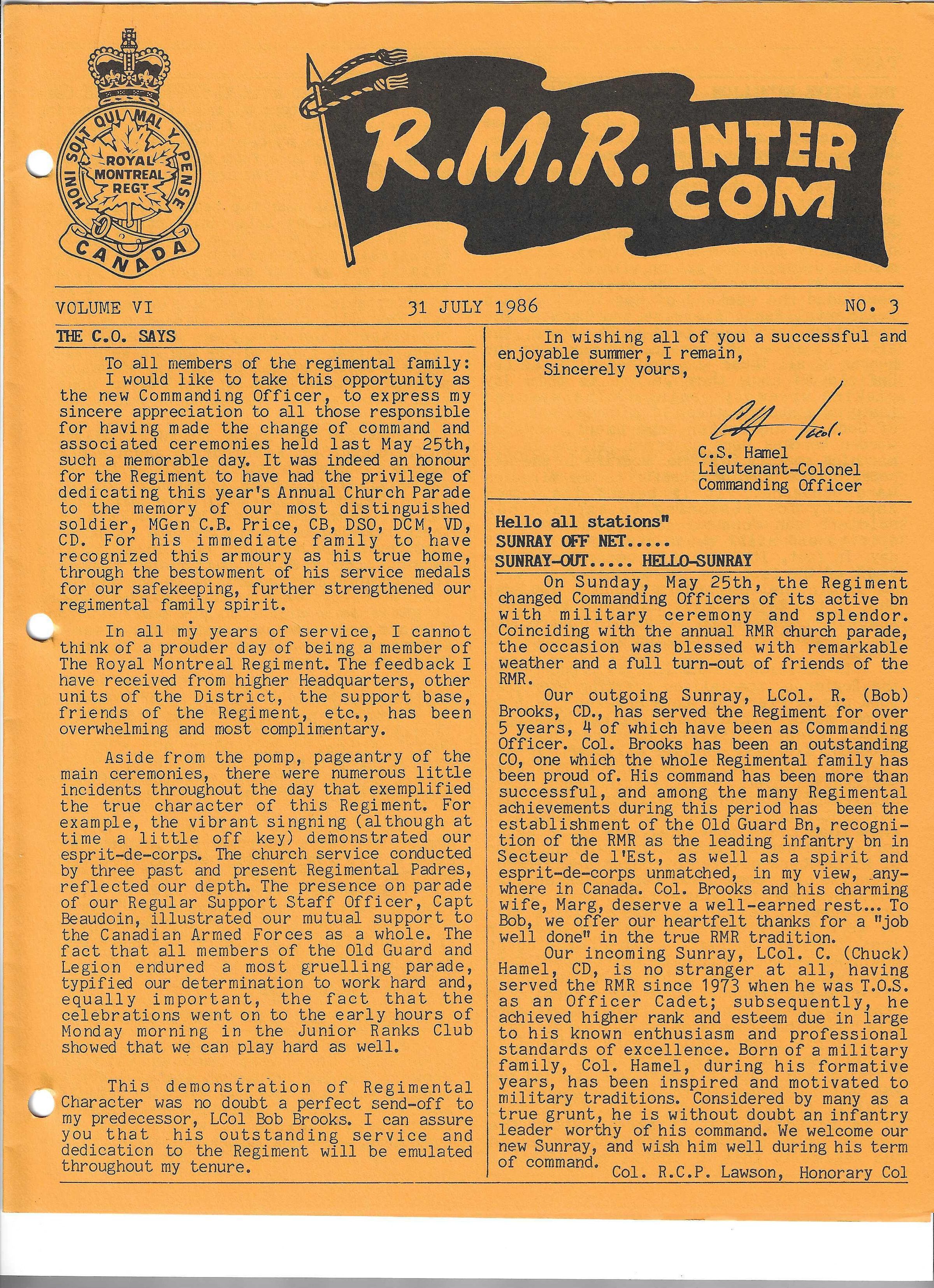 Eggenberger, John Christian, Lawson, Rhett C. P., Cavaluzzi, Ralph, McCarthy, Joseph William, Elder, Patricia, Hamel, Charles S., Brooks, Robert Joseph, Thibault, William J., Petrilli, Antonio, MacLellan, Keith William, Dwyer, Dennis Fielding, Parkinson, Sydney L., Harflett, Charles Albert., Hoare, John Dawson, Barre, Paul Herbert, Kieran, Mary, Hazen, Frederick Brown, McBean, Keith, Brewer, Elizabeth, Watkins, Edward. D., Murray, Vernon Alexander, Price, Charles Basil, Butler, Helena, Glen, Patricia, Boultbee, Nicholas Leonard Melson, Smith, Gladys, Javornik, George J., Pelletier-Watkins, Denise, Garber, Richard, Winnard, Daniel, The Royal Montreal Regiment Association, Branch 14, Royal Canadian Legion, 2806 Pointe-Claire (RMR), RCACC, Glen, Ronald Harvey, Labelle, Bernard E., Hugman, Marjorie, 2862 Royal Montreal Regiment (Westmount), RCACC, DeVito, Nicolas, Glickman, Tobias M., Kwasiborski, Lech, Fitzgerald, Michael E., Wheaton, Robert A., Newcombe, Douglas William, Peebles, David, Hutcheson, Barbara, Day, Andre H., Colgan, Vincent Gerald, Duffy, Frank J., RMR Museum
