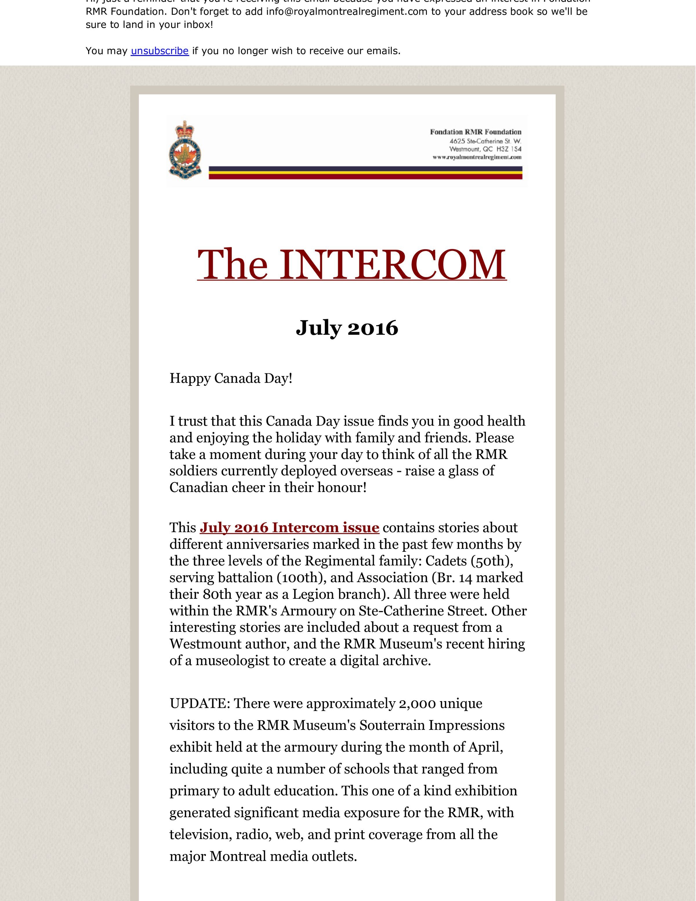 The Honorary Lieutenant Colonel refers to anniversaries marked by three levels of the Regimental family: