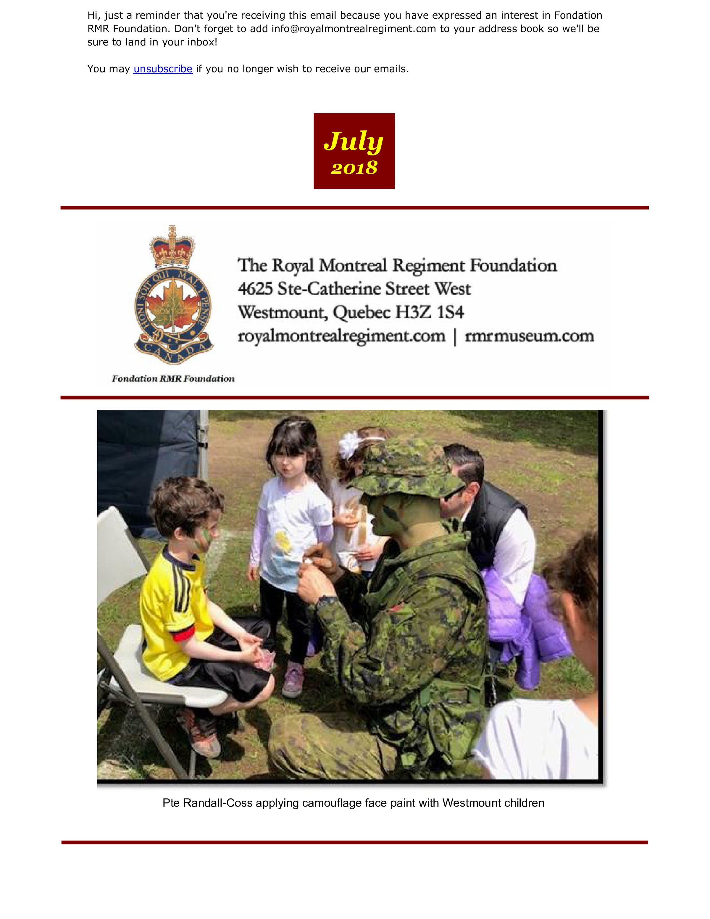 Smith, Christina, Robinson, Colin Angus, 1 West Montreal Squadron, Townsend, Kenton, Leroux, Stephan, Friedman, Corey, Hollingdrake, Cedric, Belvedere, John, Trent, Peter Francis, Randall-Coss, C. B., 2806 Pointe-Claire (RMR), RCACC, 2862 Royal Montreal Regiment (Westmount), RCACC, Shone, John Lindegaard, Molson, Andrew