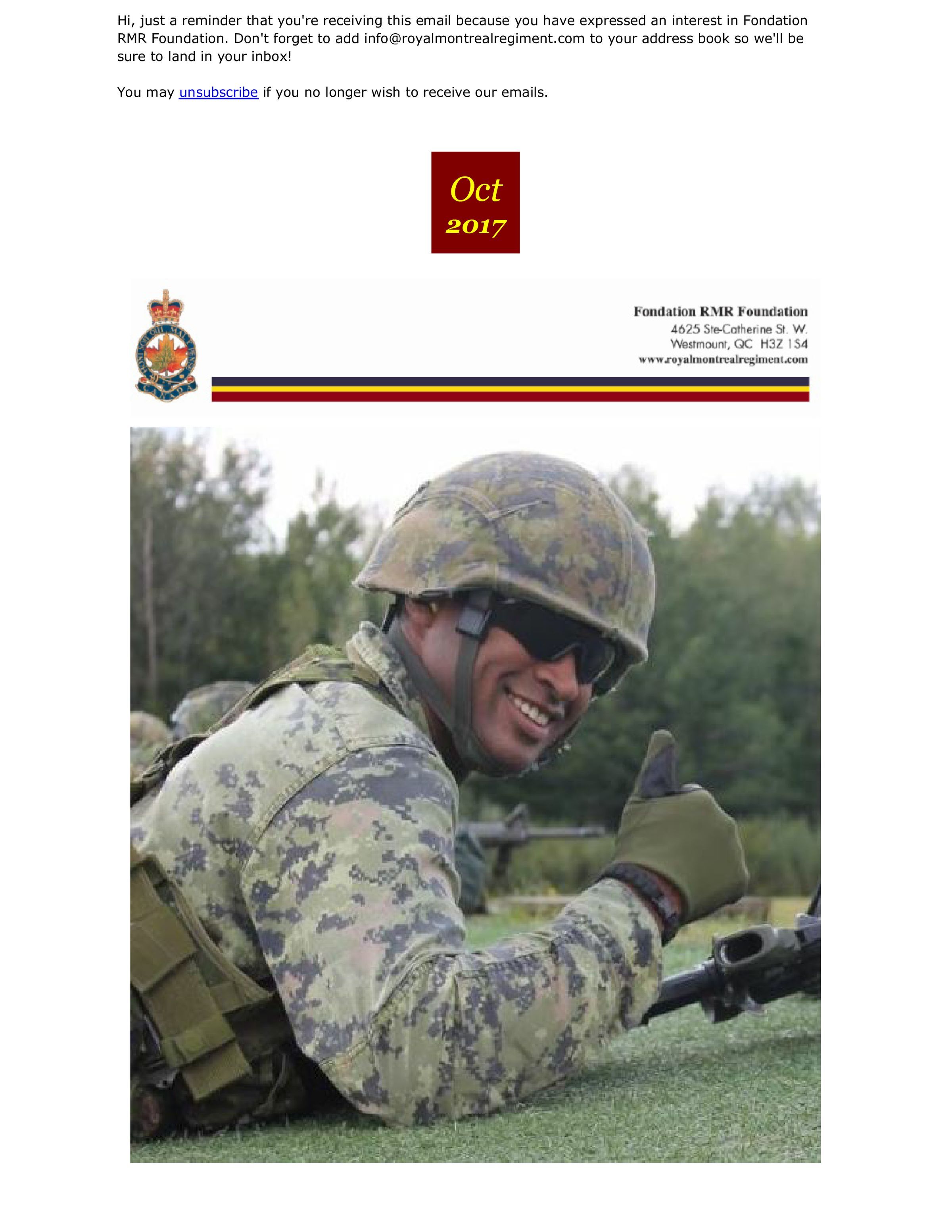 Vincent, Alan P., Robinson, Colin Angus, 1 West Montreal Squadron, Cordeiro, Pierre, Guerin, Suzanne C., Nino, Juan D., Leslie, Thomas, Randall-Coss, C. B., Javornik, George J., The Royal Montreal Regiment Association, Branch 14, Royal Canadian Legion, Shone, John Lindegaard, Lamb, Christopher, Duval, Raymond, Molson, Andrew