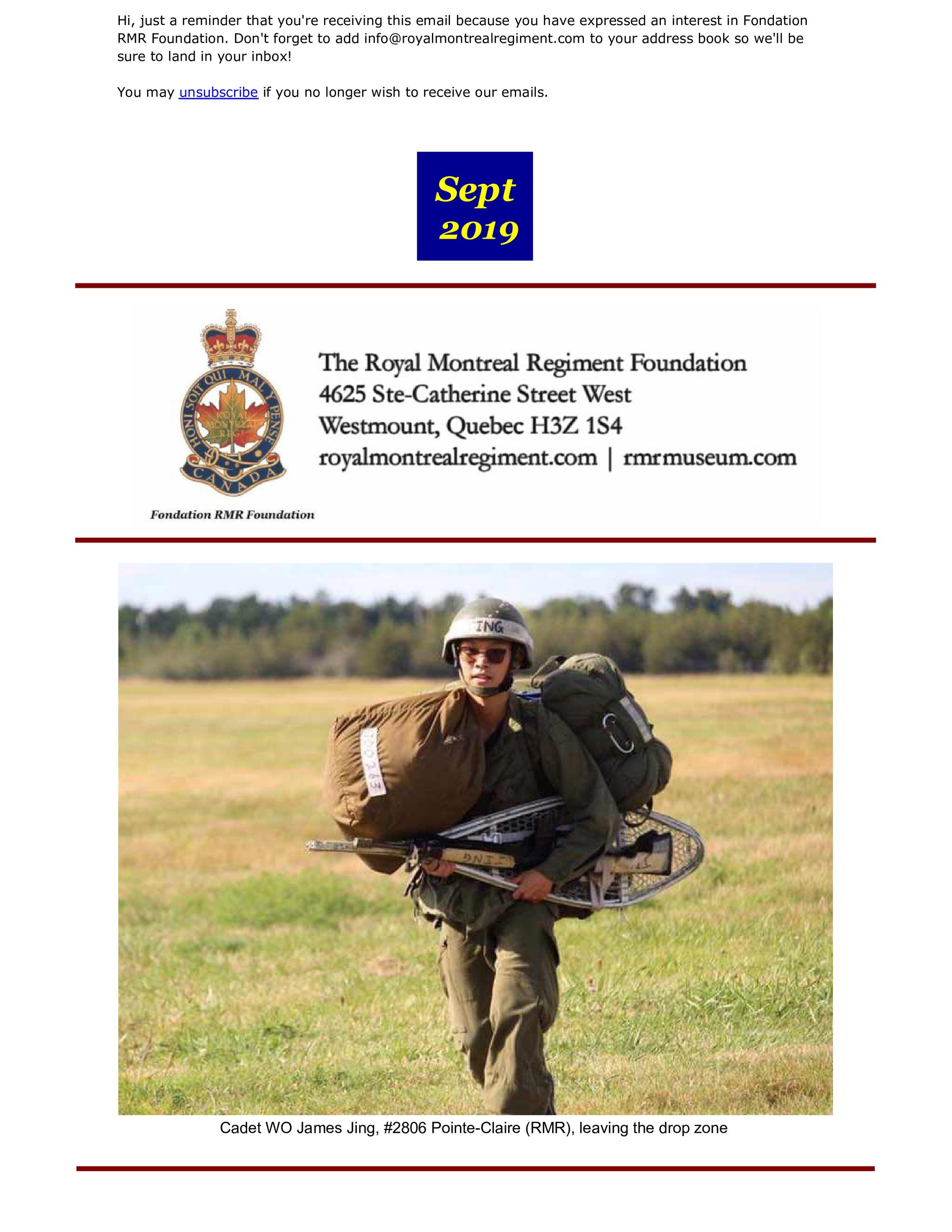 Hamel, Charles S., Robinson, Colin Angus, Leroux, Stephan, Thomas, Kim, The Royal Montreal Regiment Association, Branch 14, Royal Canadian Legion, 2806 Pointe-Claire (RMR), RCACC, Bensadoun, David, Je Me Souviens, Shone, John Lindegaard, Colgan, Brian, RMR Museum, Guerin, Suzanne C., Vincent, Alan P., Jaggi, Nimit