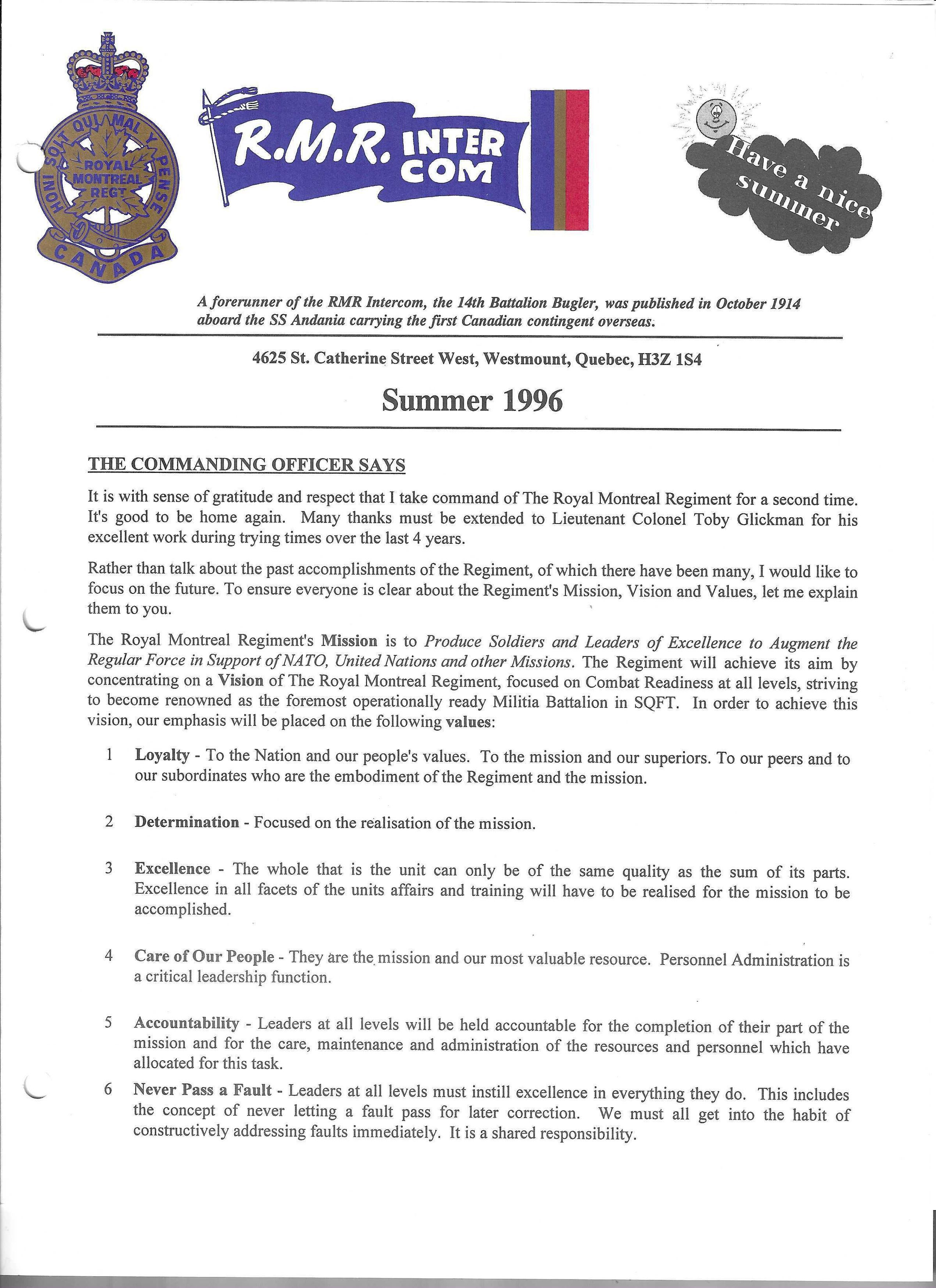 McCarthy, Joseph William, Furholter, Grant, Paterson, Pat, Selby, Reg, Turner, Walter Ed., Fairchild, David, Tingle, Harold Joseph, Darvill, Charles A., Hall, Harry F., Barre, Paul Herbert, Frezza, John, Diamond, N., Hillier, George C., Bennett, Benny, Grant, Adrian, Keenan, Howard J., Dowler, Edwin Cecil, The Royal Montreal Regiment Association, Branch 14, Royal Canadian Legion, Ho, Derek, Winterberg, Peter, Gordon, Stewart, Paulin, Patrick, Johnstone, W., Rambarransingh, Nikita, Simms, John B., Shone, John Lindegaard, Glickman, Tobias M., Auborg, Ed., Bergevin, Luc, Groves, Louise, Perodeau, Gilles Narcisse George, Maass, Gerhart, Schwob, Muriel, Wilkins, Charles Hume, Finnie, Keith, Finnie, Daria, MacPherson, James Pennington Carlyle, Craddock, William Robert, Baines, Stanley Lawrence