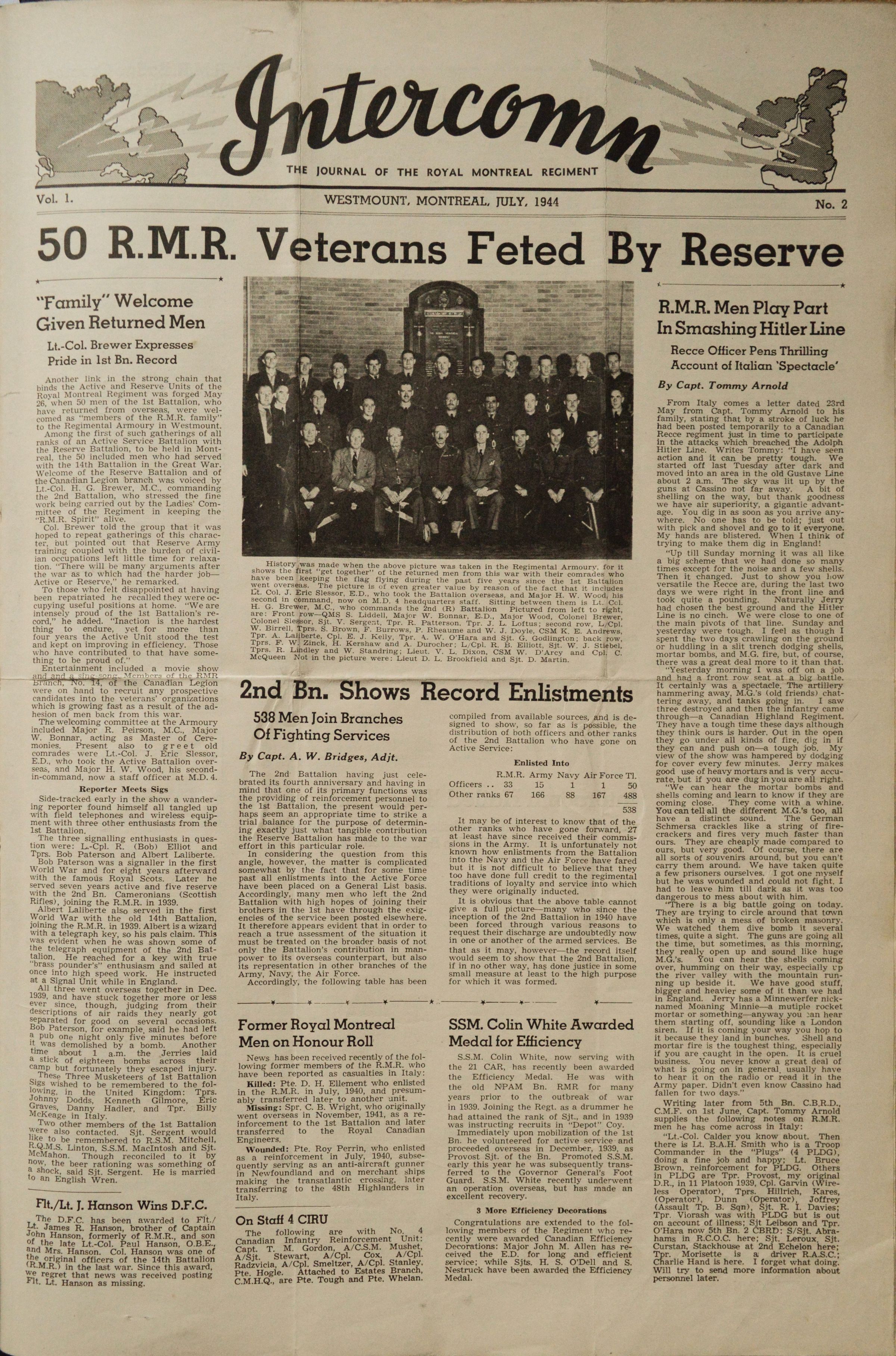 Brewer, Hugh Graham, Bridges, Alfred Whiteside, Arnold, Thomas Taylor, Calder, James Allan, Morehouse, John Harwood, Jamieson, Melvill Allan, Lewis, Thomas Cripps, Logie, George Henry, McLaughlin, Robert Leonard, Schwob, Robert Julien, Lowe, Albert Hector, O'Sullivan, W. M., Tingle, Harold Joseph, Middleton-Hope, Clark Albert, McLean, Norman A., Blue, John Lawrence, Price, Charles Basil, Mackenzie, Kenneth Allan, Kay, Frederick Gordon, Whitehead, George Victor, Roberge, David A., Royal Montreal Regiment Band and Drums, Strange, Courtland McLean, Hunter, Douglas R., Hunter, Kenneth Lionel, Bale, Harry R