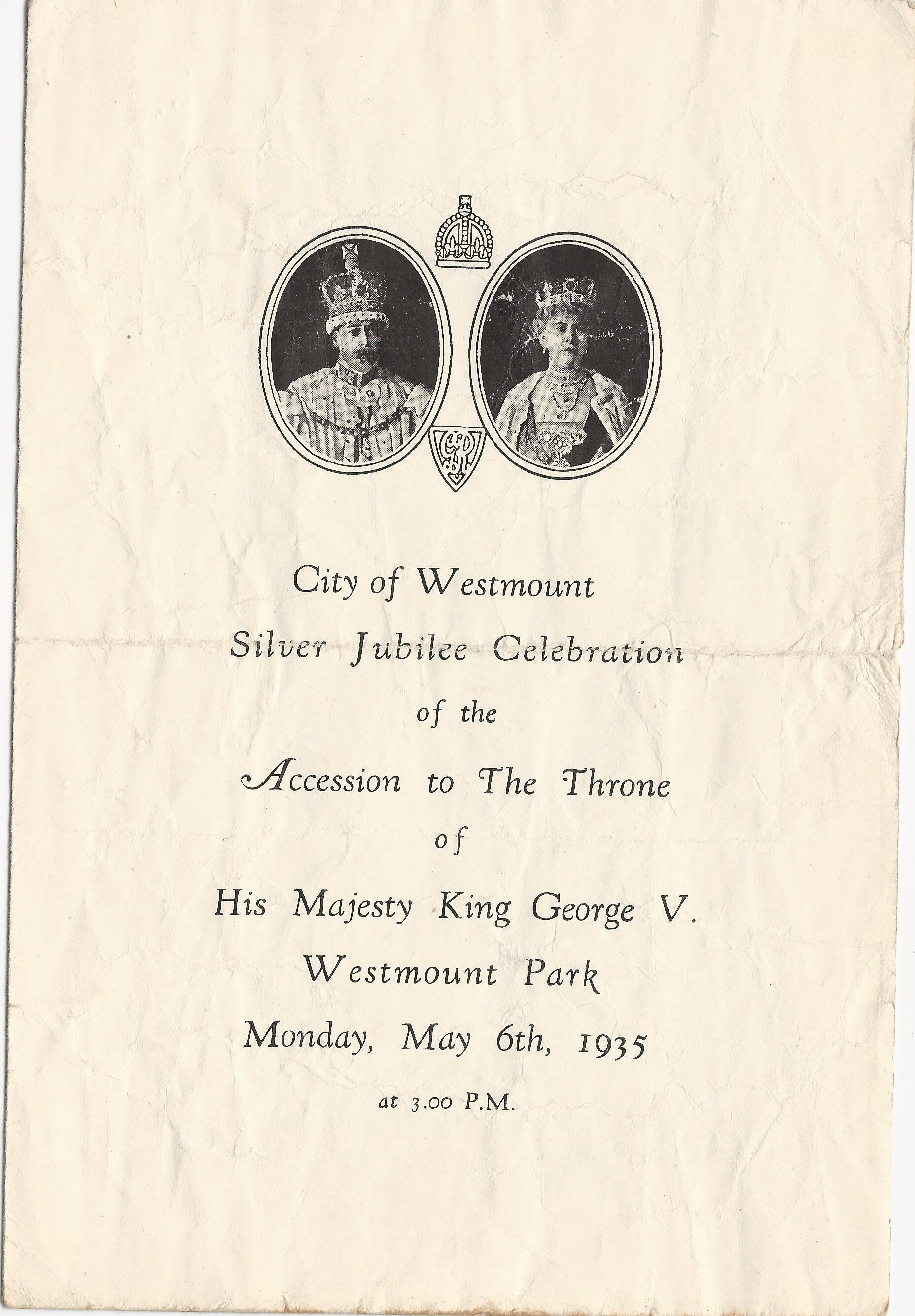 A leaflet containing the programme for a civic celebration and parade by The Royal Montreal Regiment to mark the Silver Jubilee of the accession to the throne of King George V. This was held in Westmount Park on Monday May 6, 1935.Archive Details