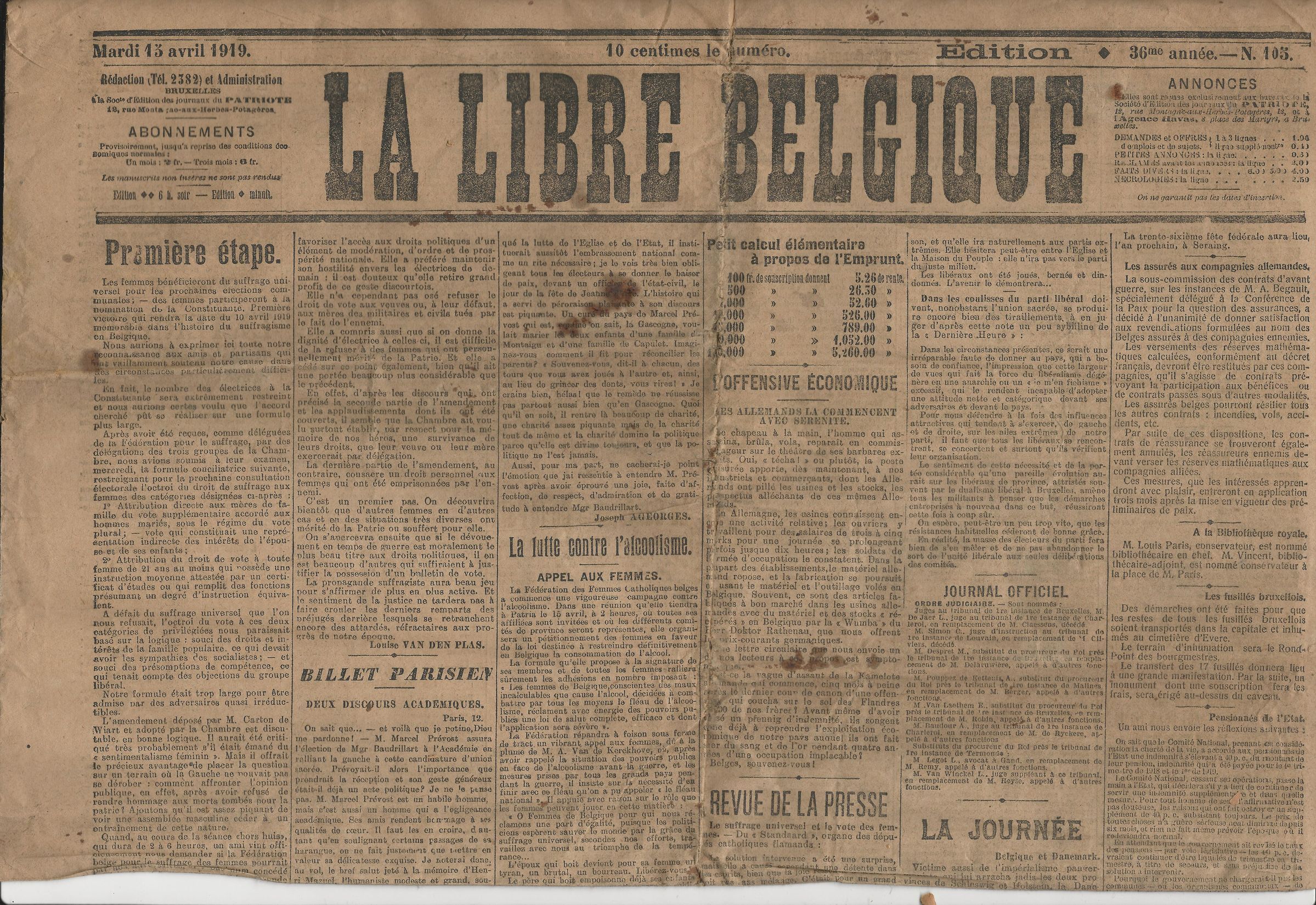 The modern La Libre traces its origins to the Le Patriote newspaper, founded by Victor and Louis Jourdain in 1884. Politically, the newspaper supported the dominant centre-right Catholic Party.