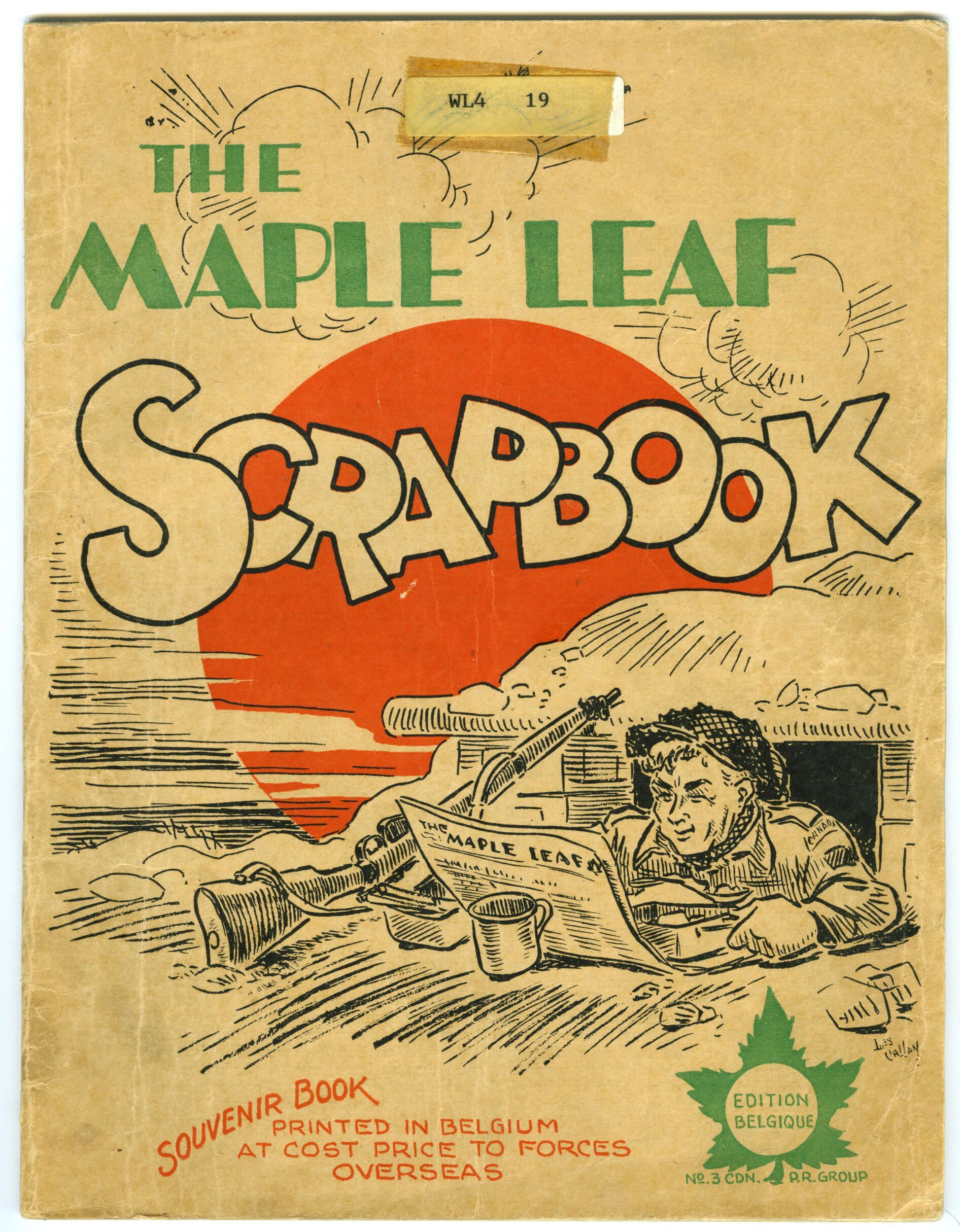 "The Maple Leaf/Scrapbook/ Souvenir Book/ Printed in Belgium at cost price to forces overseas"