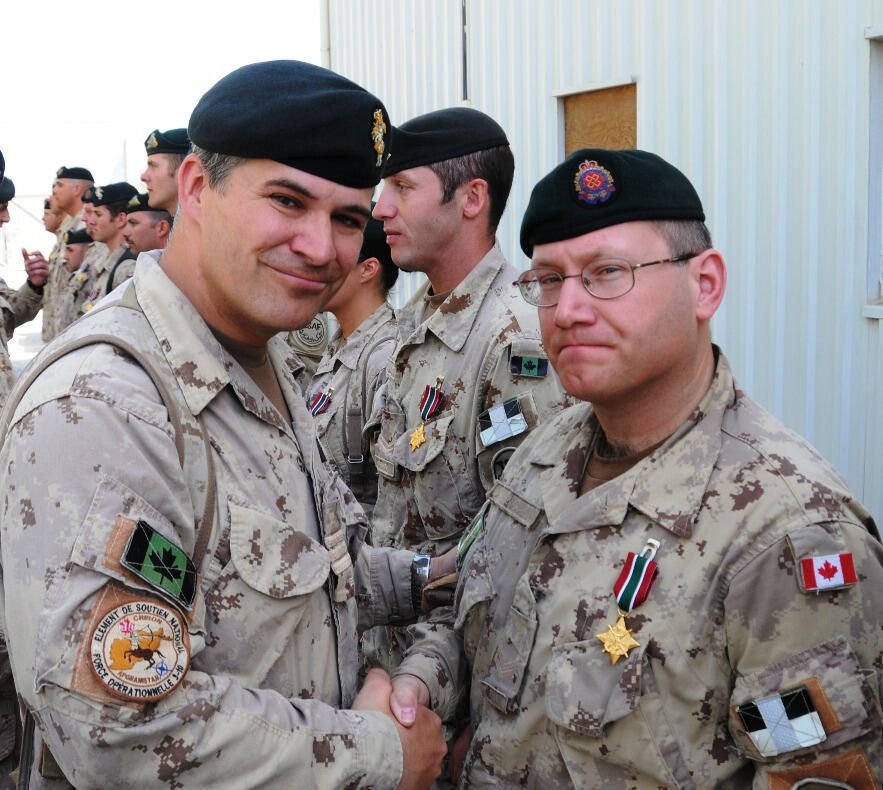 Corporal Frank Laciak from The Royal Montreal Regiment is receiving his General Campaign Star - Afghanistan from his unit commander.Photograph Details