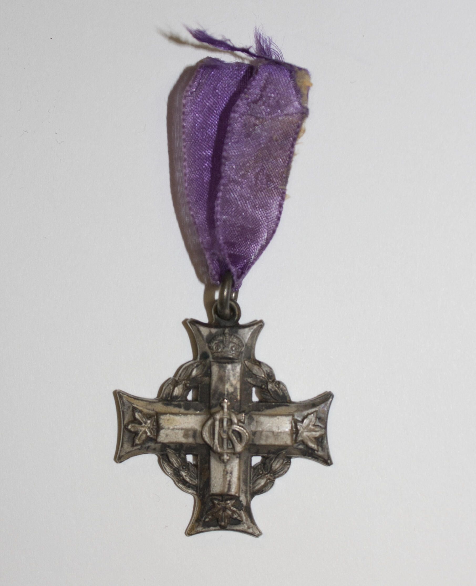 Memorial Cross (Silver Cross) of Major William Jeffrey Holliday, MC (511008). Born on April 12, 1877 in Quebec City, he participated in the Boer War with the Canadian Mounted Rifles, and enlisted for World War I on July 9, 1915. He died of his wounds April 16, 1917 and is buried in the Boulogne Eastern Cemetery, France.