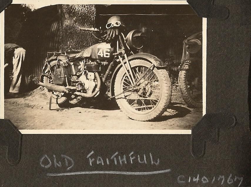 A black and white photo of a Norton WD 16H motorcycle which Private Thomas K. Scovil refers to here as "Old Faithful" (C401767 / H21)Photograph Details