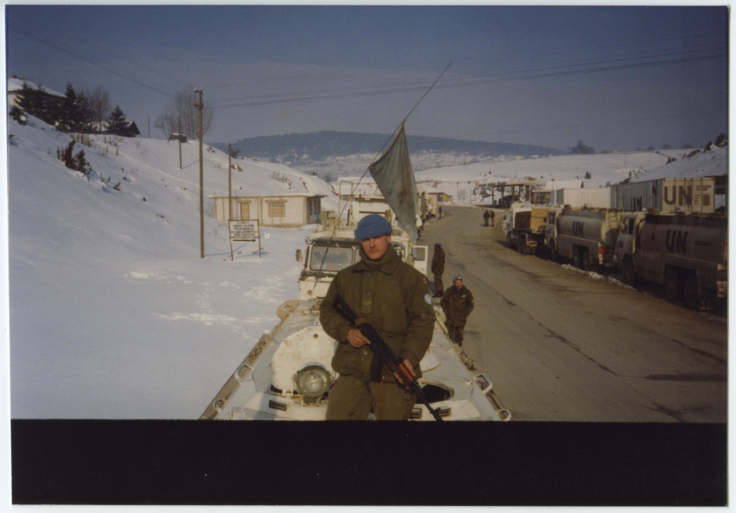 An unknown Canadian UN soldier. He is holding an AK47 assault rifle at UN Base in Croatia.Photograph Details