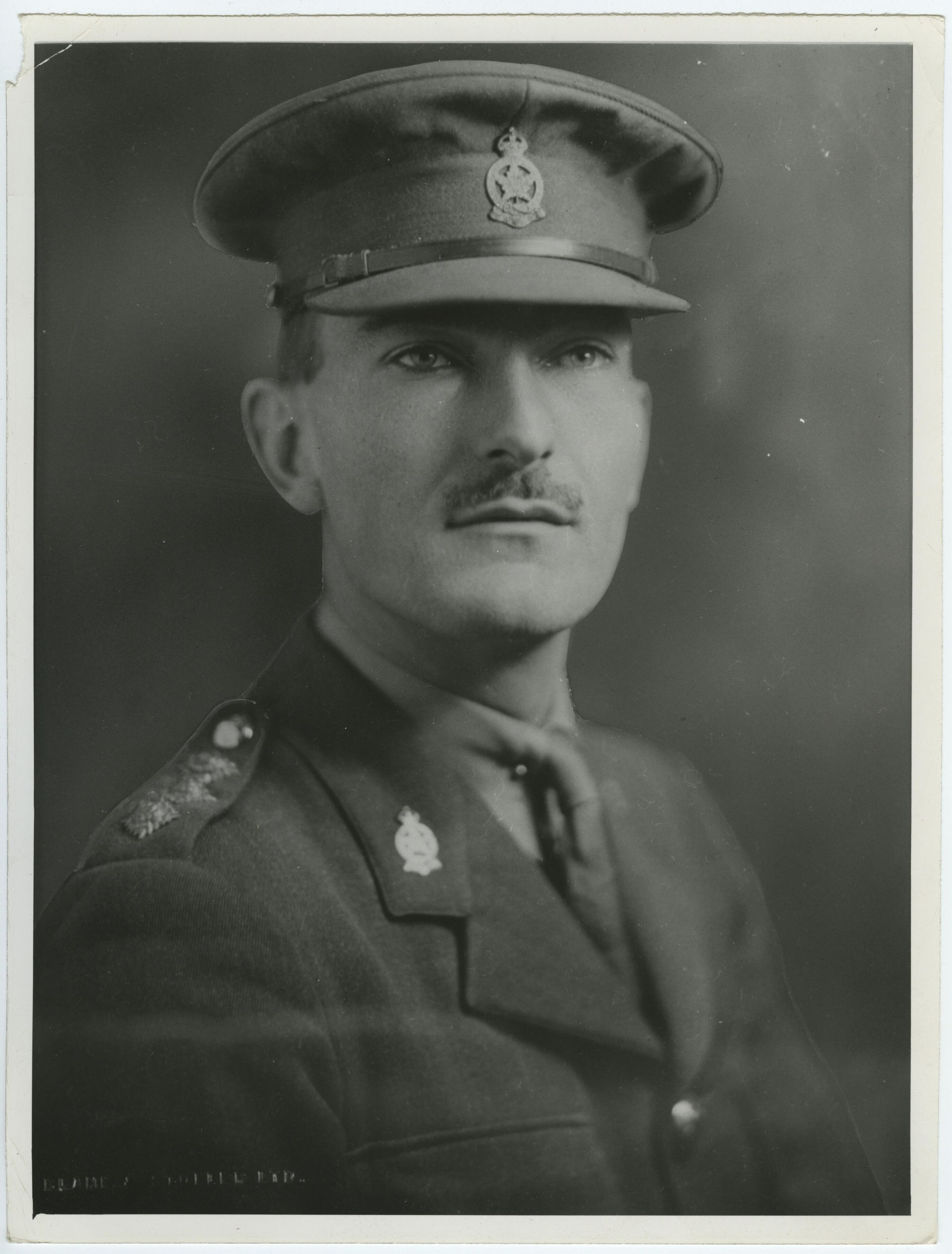 A black and white portrait photo of Lieutenant Colonel James A, Calder, Commanding Officer, 1st Battalion, RMR, when he was Captain.Photograph Details