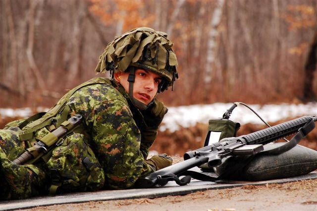 Captain Nicolas Gauthier firing on the range at Camp Farnham, Quebec during an exercise held by The Royal Montreal Regiment.Photograph Details