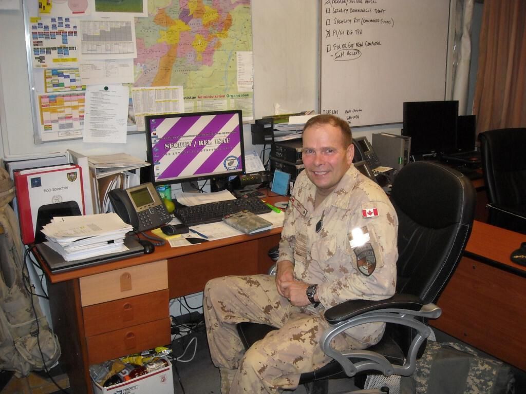 Colonel Charles (Chuck) Hamel at his desk as Canadian Advisor to the Afghanistan Minister of Defence.Photograph Details