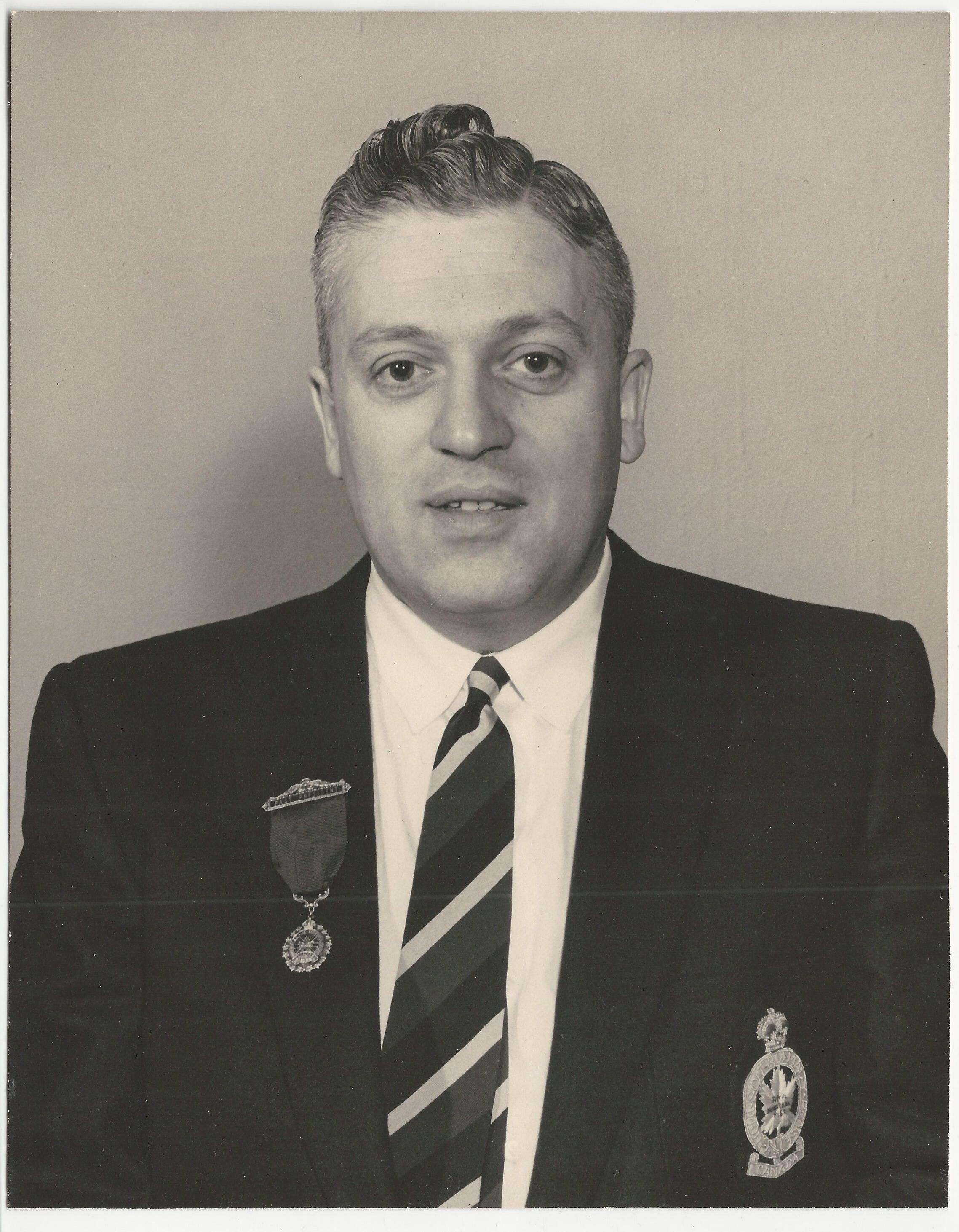 Portrait of Comrade Jim Stiebel. He was the president of The Royal Montreal Regiment Association, Branch 14 Royal Canadian Legion in 1957.Photograph Details