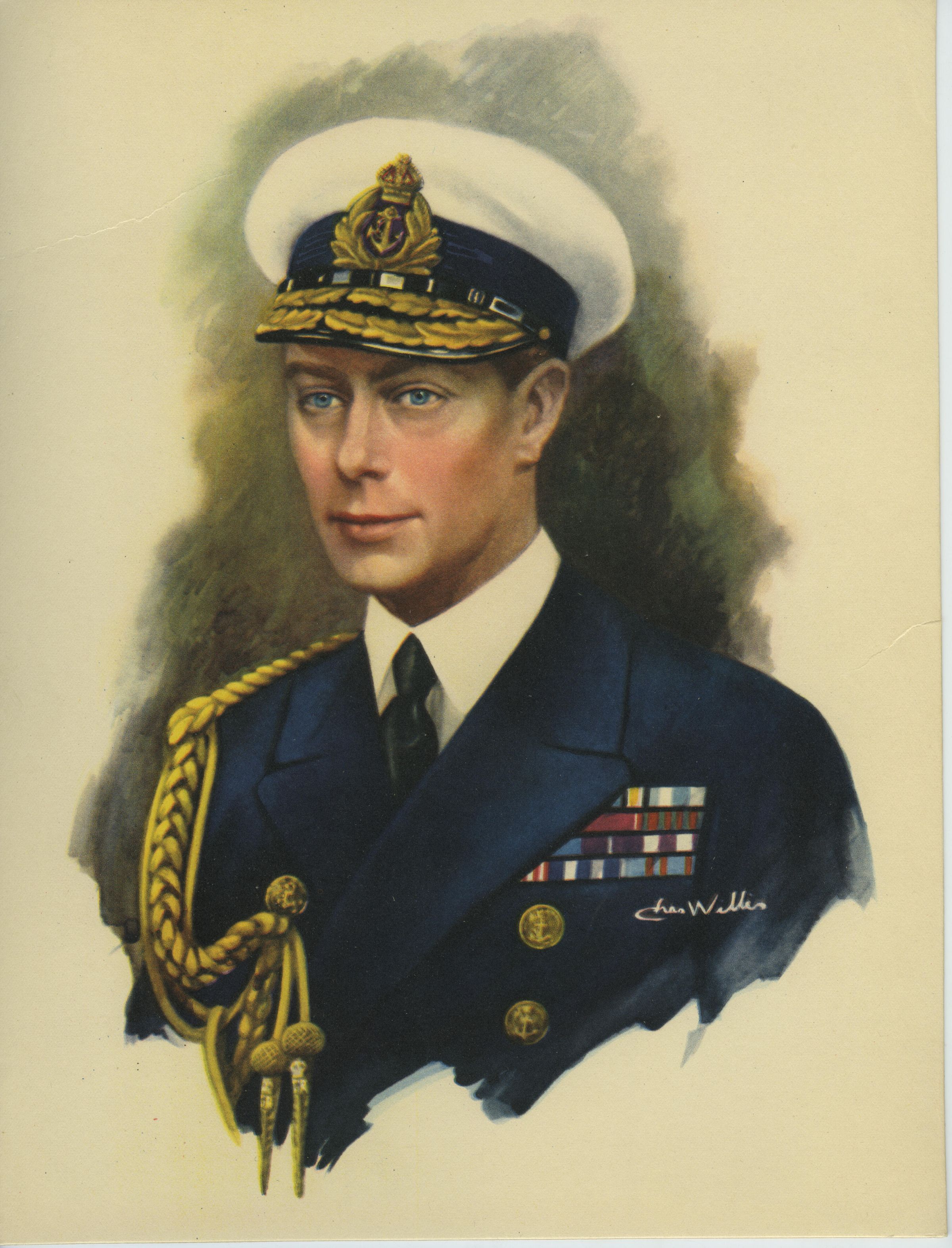 A copy of a painting of a young King George VI. He is wearing Naval uniform with cap.Lexicon