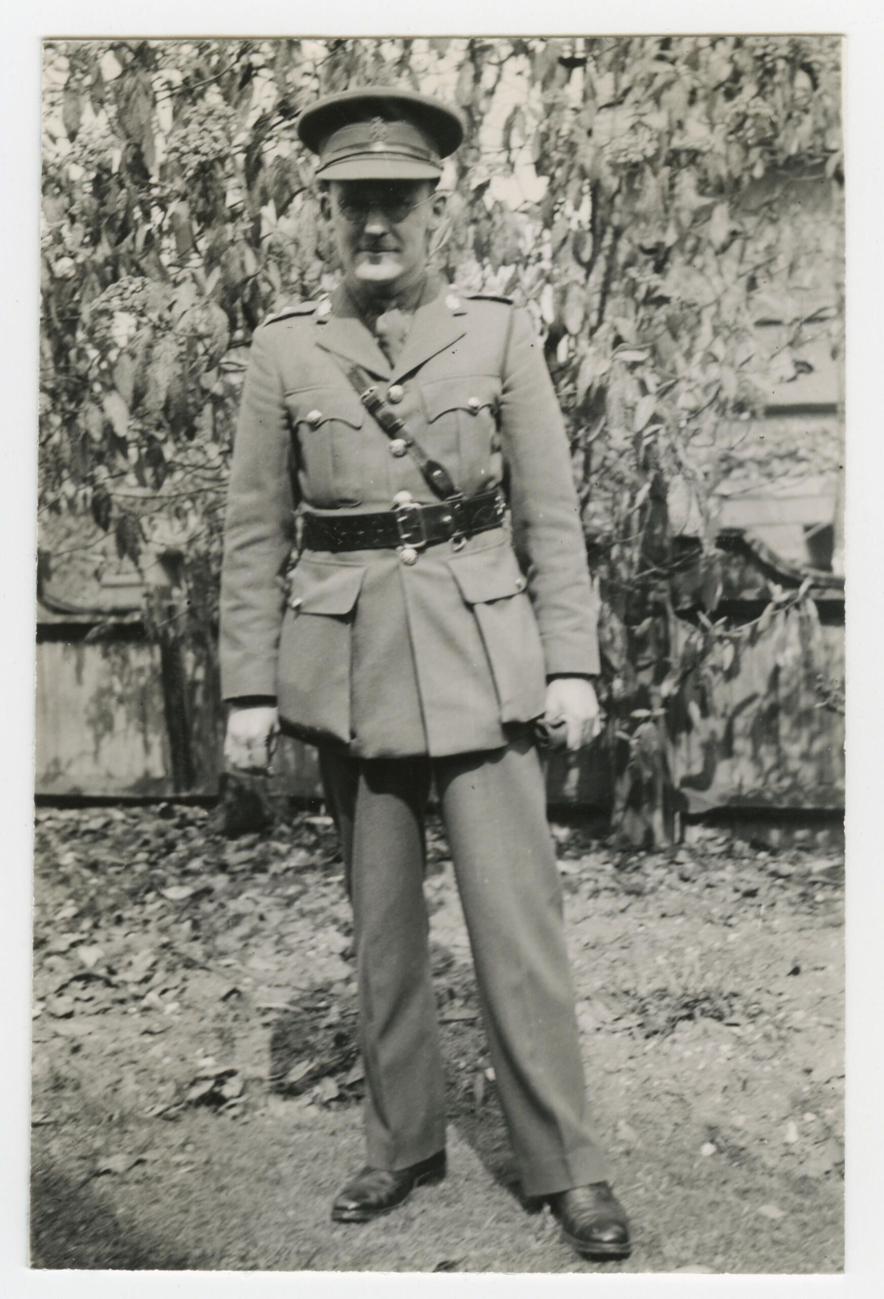 A photo of Lieutenant Colin Rankin wearing his service dress uniform and a Sam Browne belt.Photograph Details