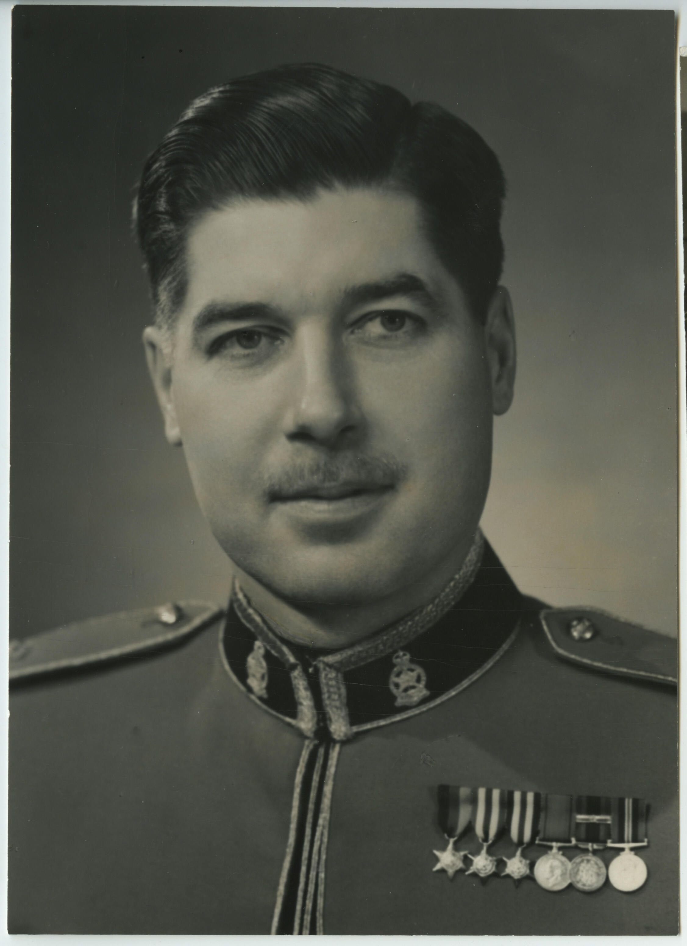 A portrait photo of Lieutenant Colonel C. James Pratt in Mess dress. On his left breast are his miniature medals.Photograph Details