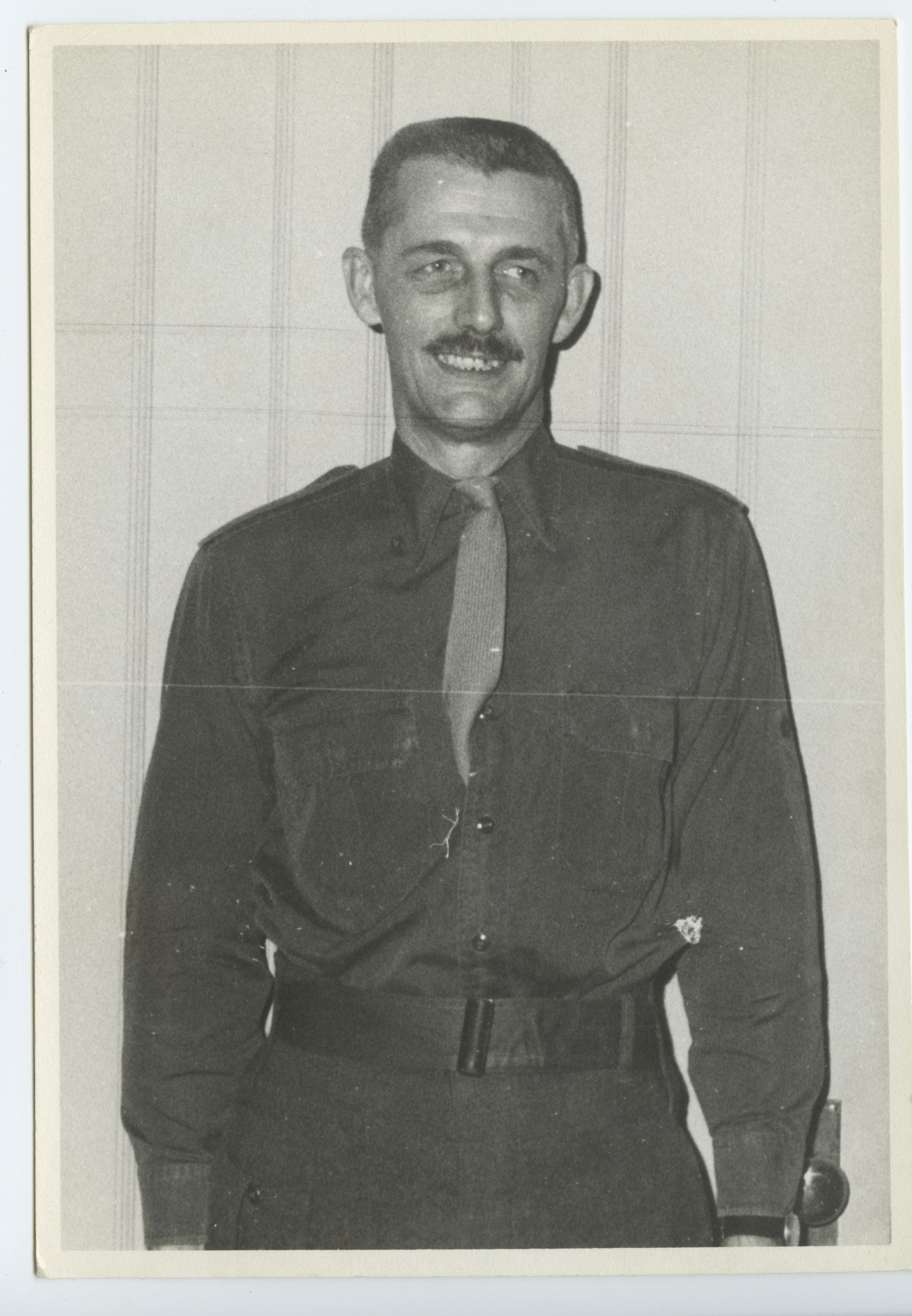 A black and white photo of Lieutenant Colonel D. W. Ward, EM, CD. He was the Commanding Officer of The Royal Montreal Regiment from 1963 to 1966.Photograph Details