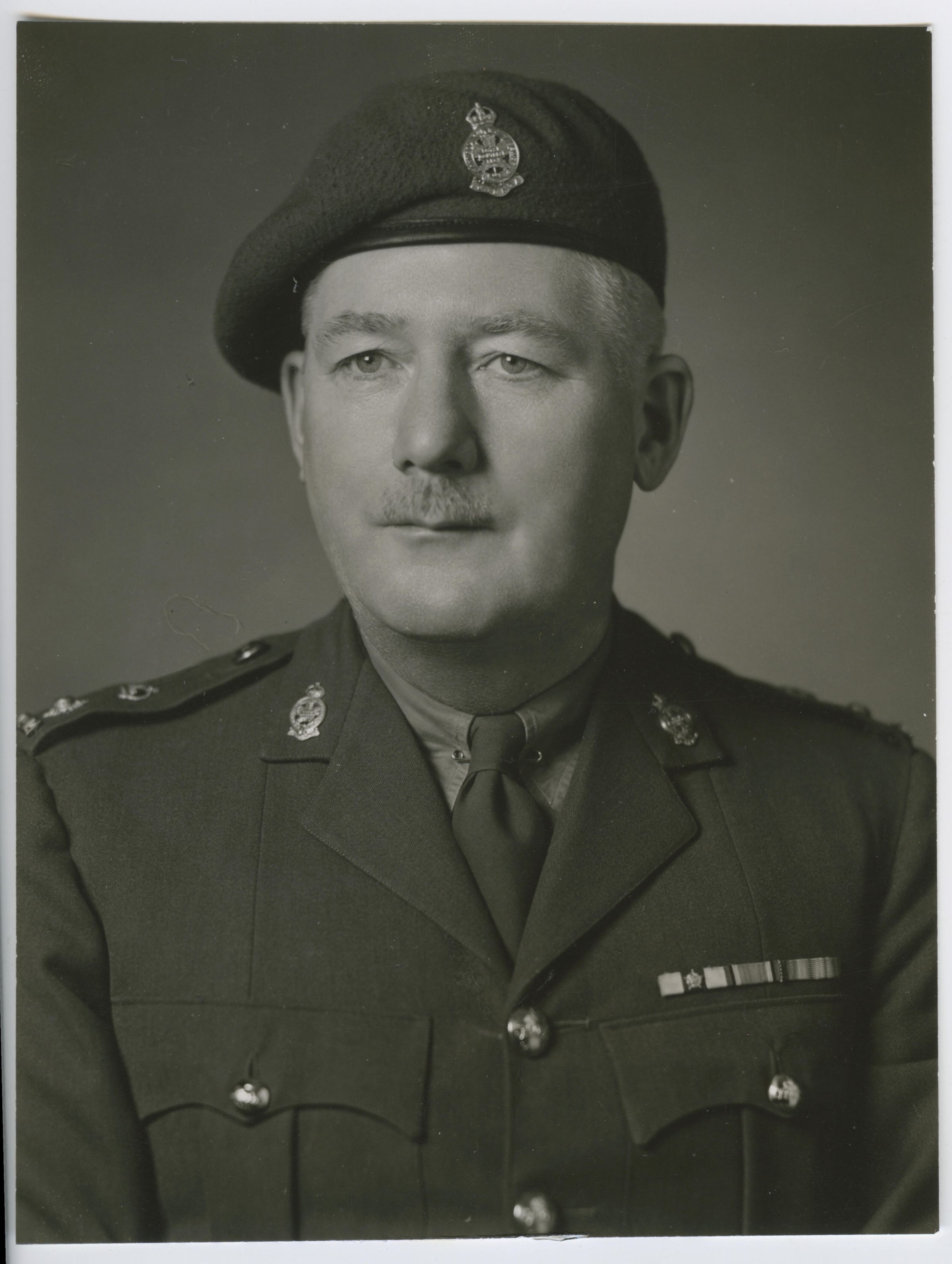 A black and white portrait photo of Lieutenant Colonel Richard Peirson, Commanding Officer of the 2nd Battalion, The Royal Montreal Regiment.Photograph Details