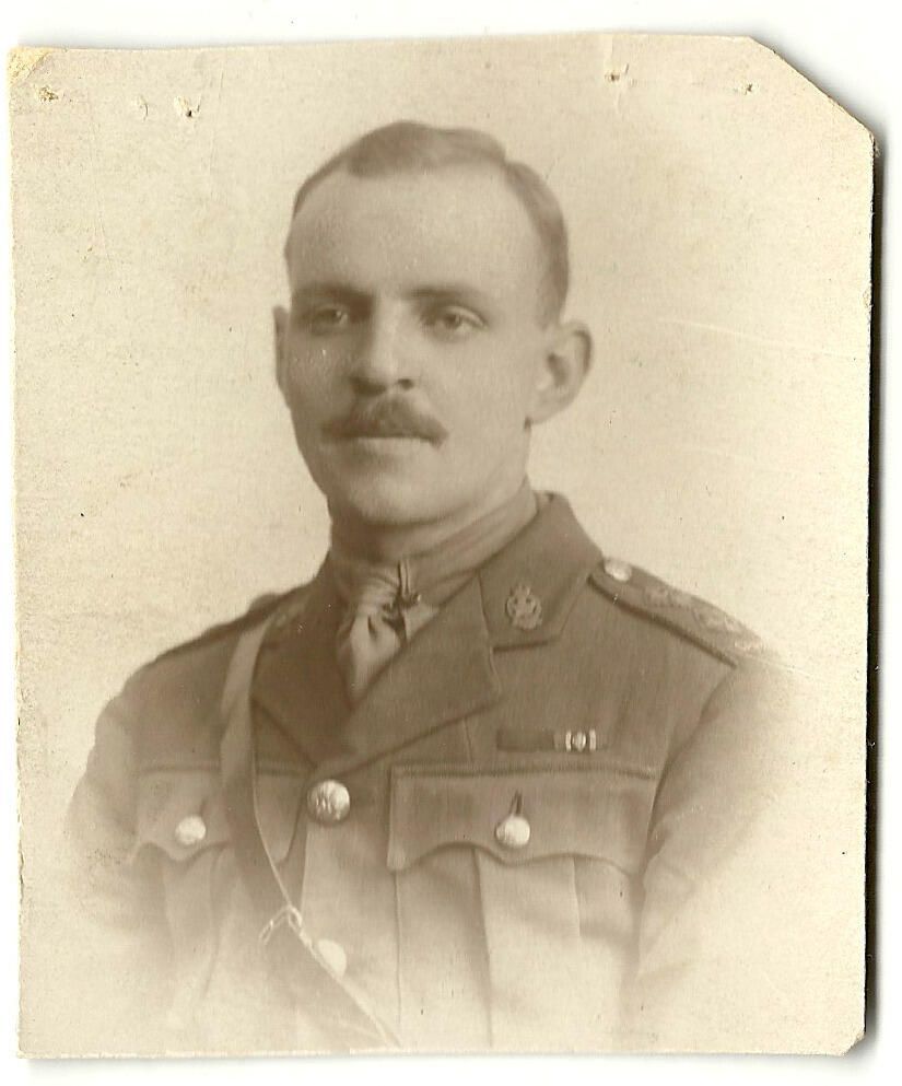 A studio photograph in sepia tones of Lieutenant Joseph Labelle wearing officers field service uniform with two medal ribbons.Photograph Details