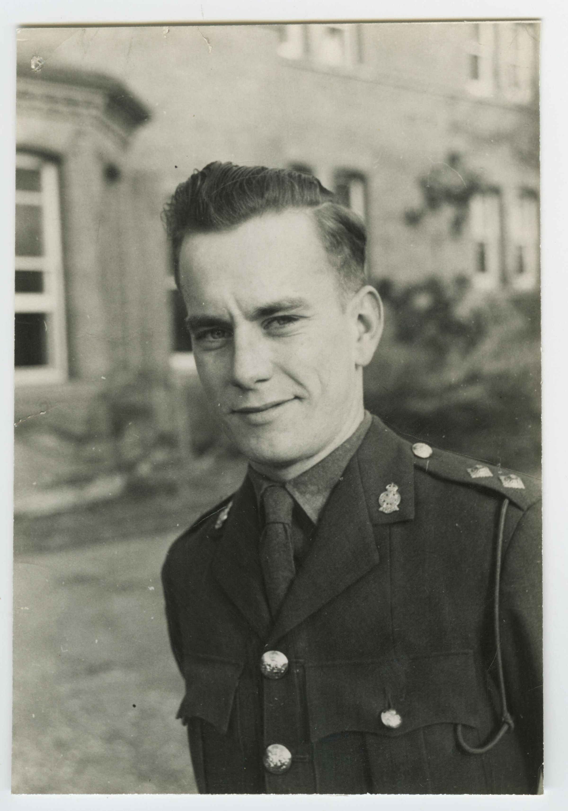 A black and white portrait of Lieutenant Thomas C. Trenholme of the 1st Battalion Royal Montreal Regiment. He is wearing his service dress uniform. Thomas C. Trenholme later became a Captain.Photograph Details