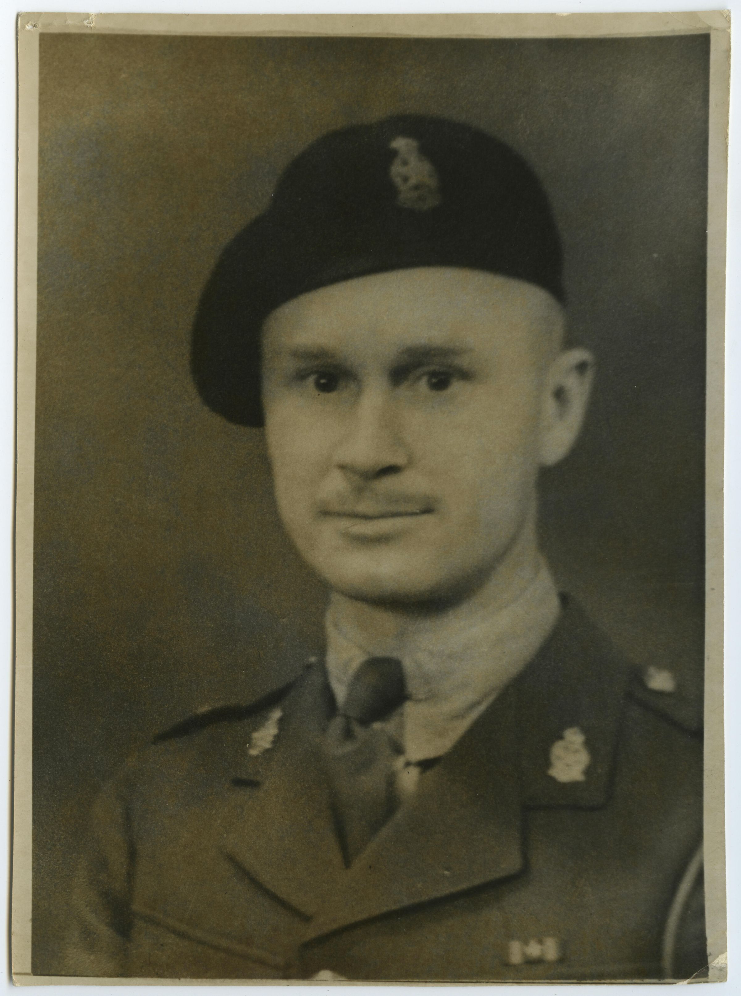 A black and white portrait photo of Major A. Hector Lowe, E.D. He was the Commanding Officer of the 1st Canadian Army Headquarters Defence Company (RMR) and was subsequently appointed to a position on the Canadian Army Pacific Force.Photograph Details