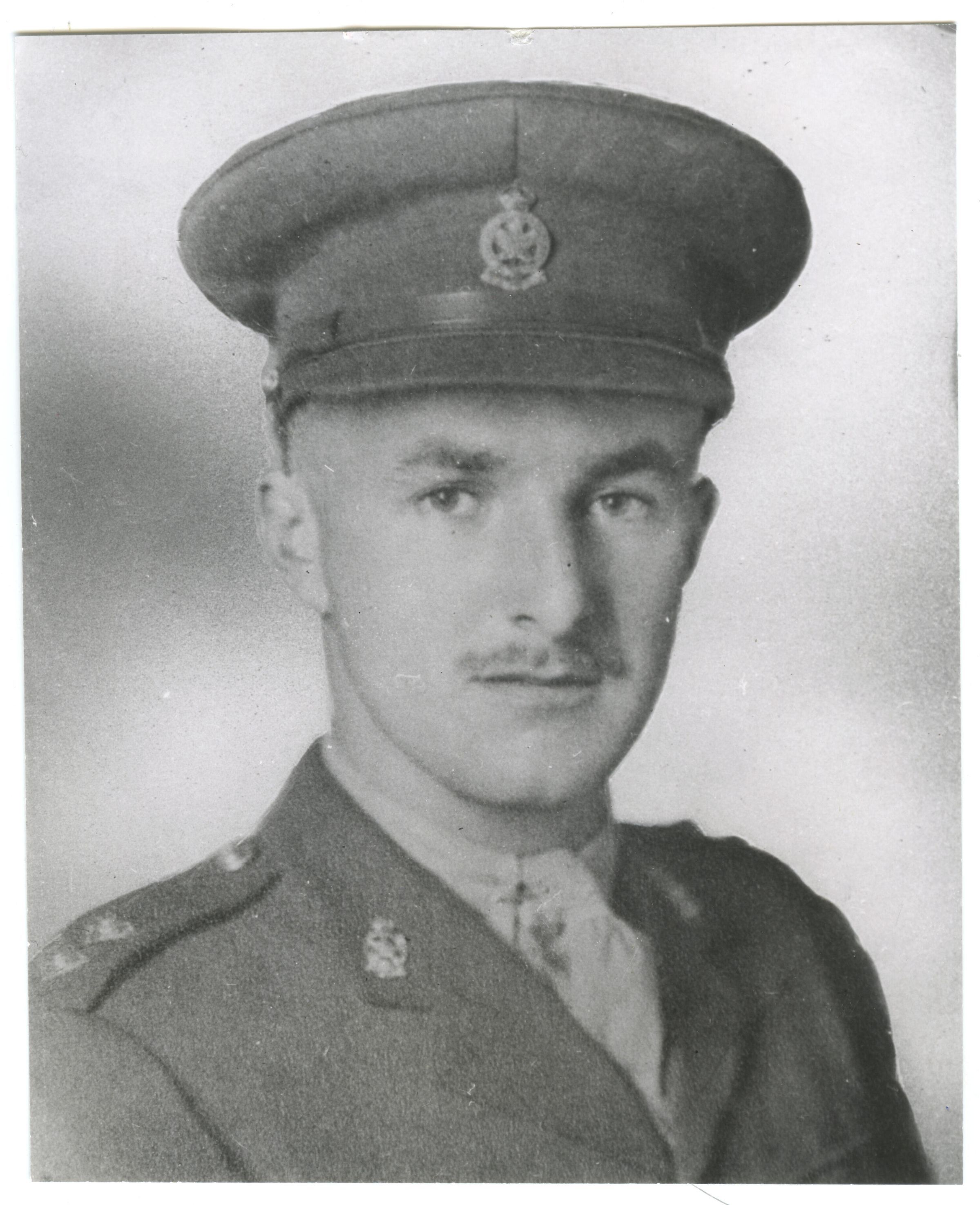 A black and white portrait of Major John P. Hanson of 1st Battalion, RMR. He is wearing his service dress uniform and a forage cap.Photograph Details