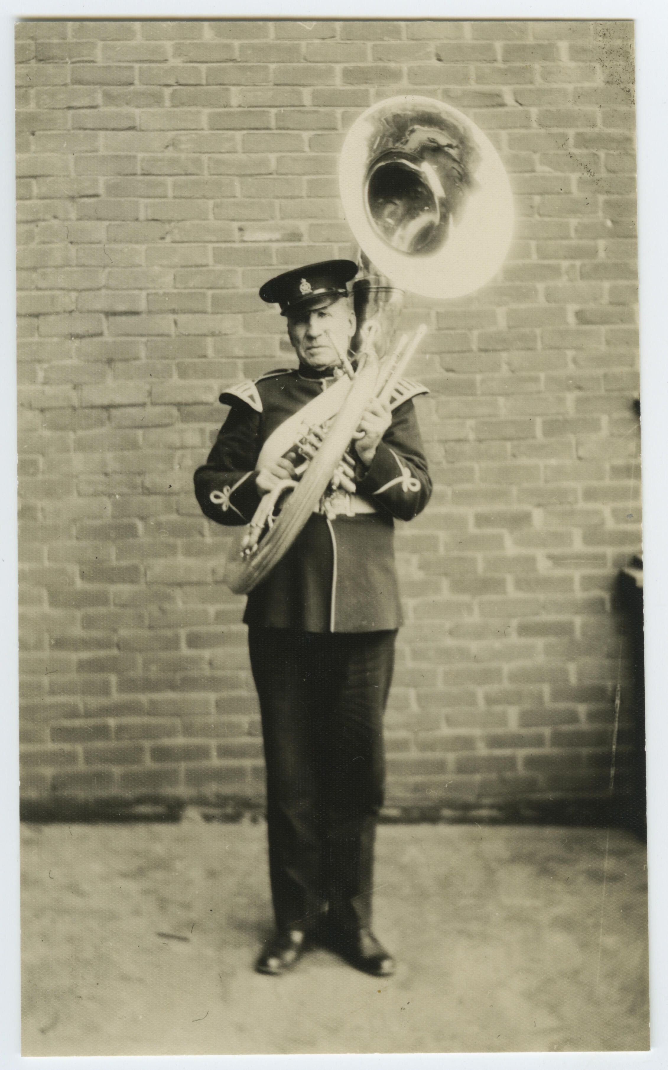 Band member, Ned Walsh, is posing with a sousaphone.Photograph Details