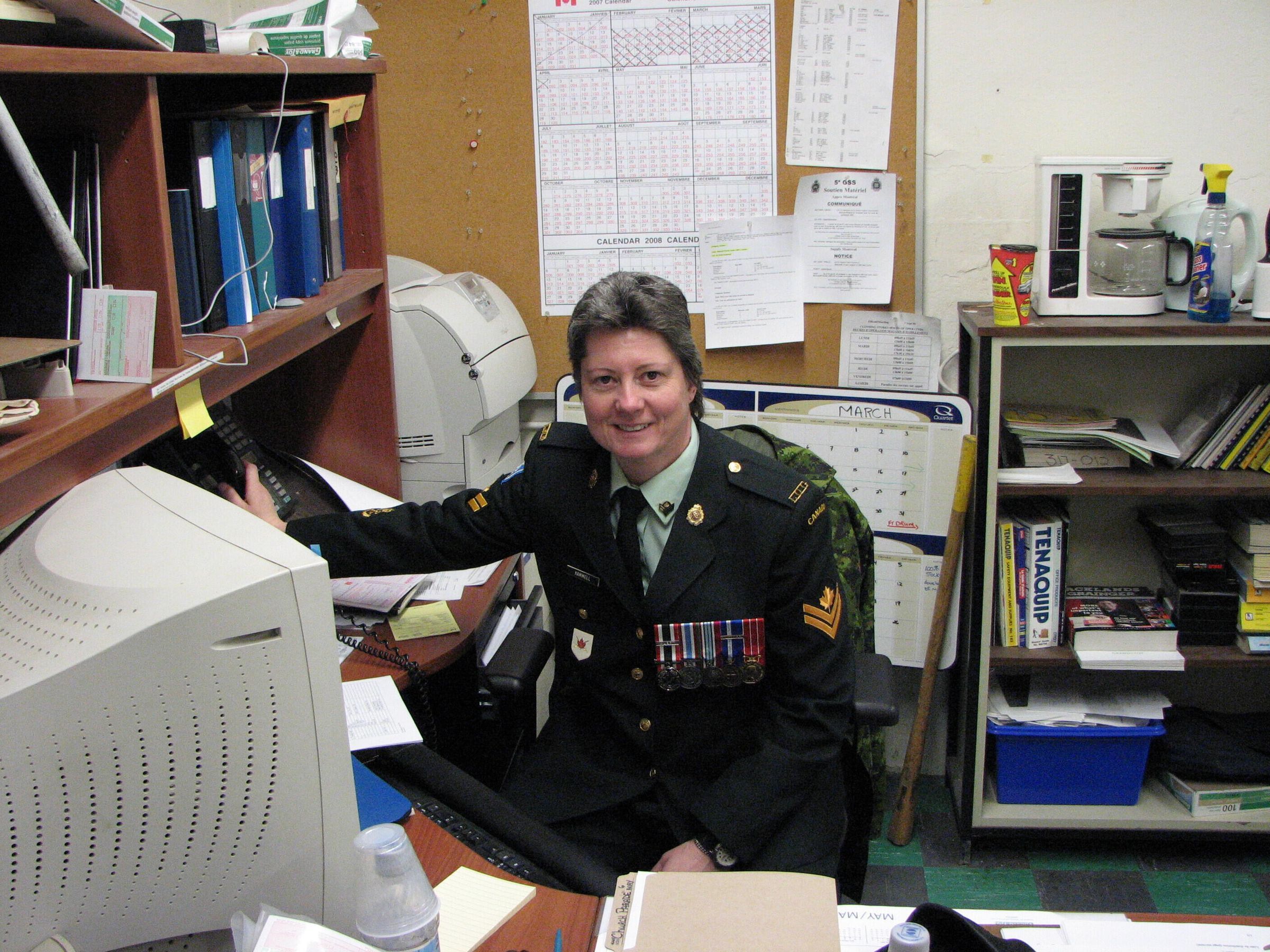Portrait of Master Corporal Hammell, working in the Orderly Room at the Westmount Armoury.