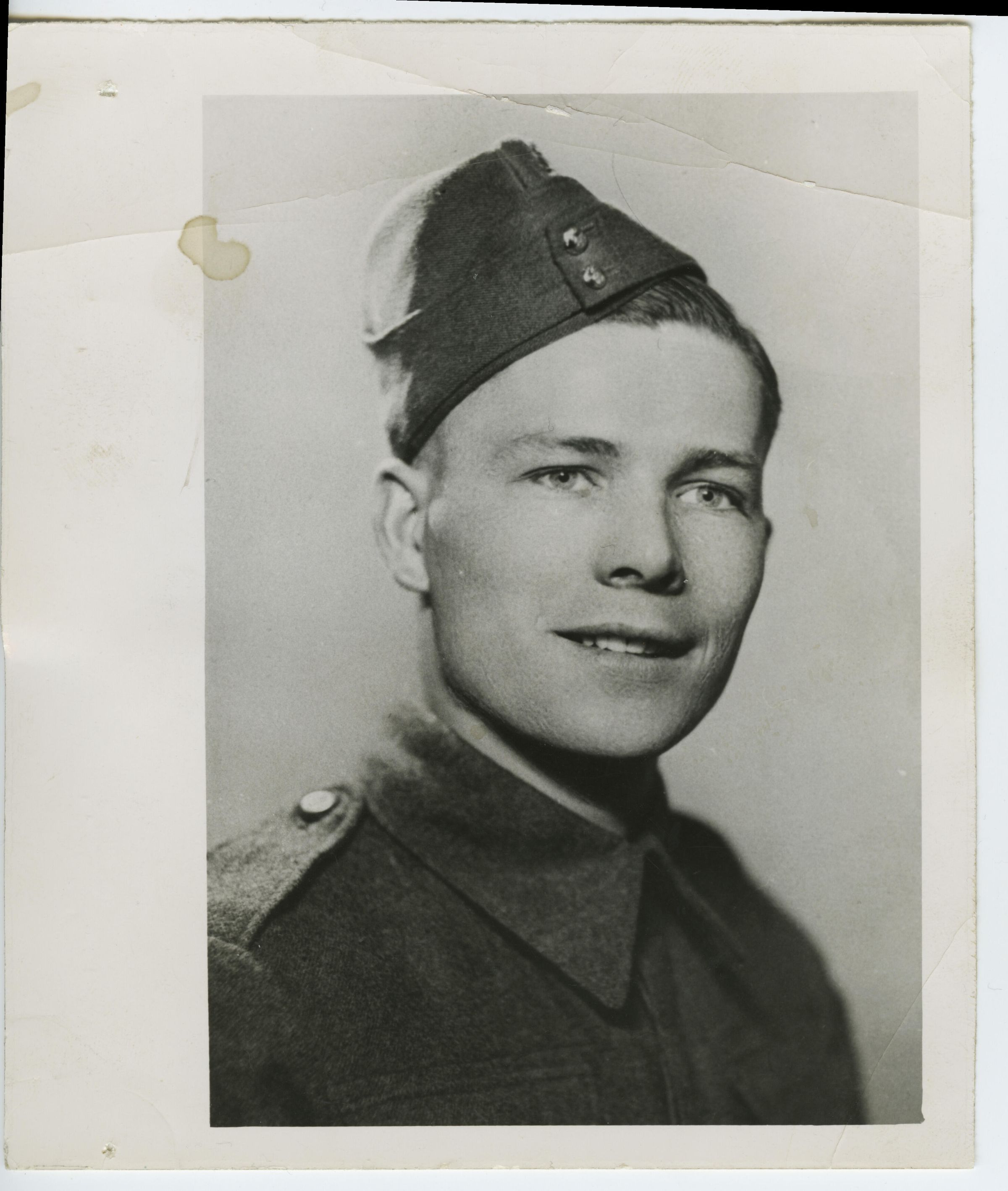 A black and white photo portrait of Sergeant Byrne, a member of the 1st Canadian Army HQ Defence Company (RMR).Photograph Details