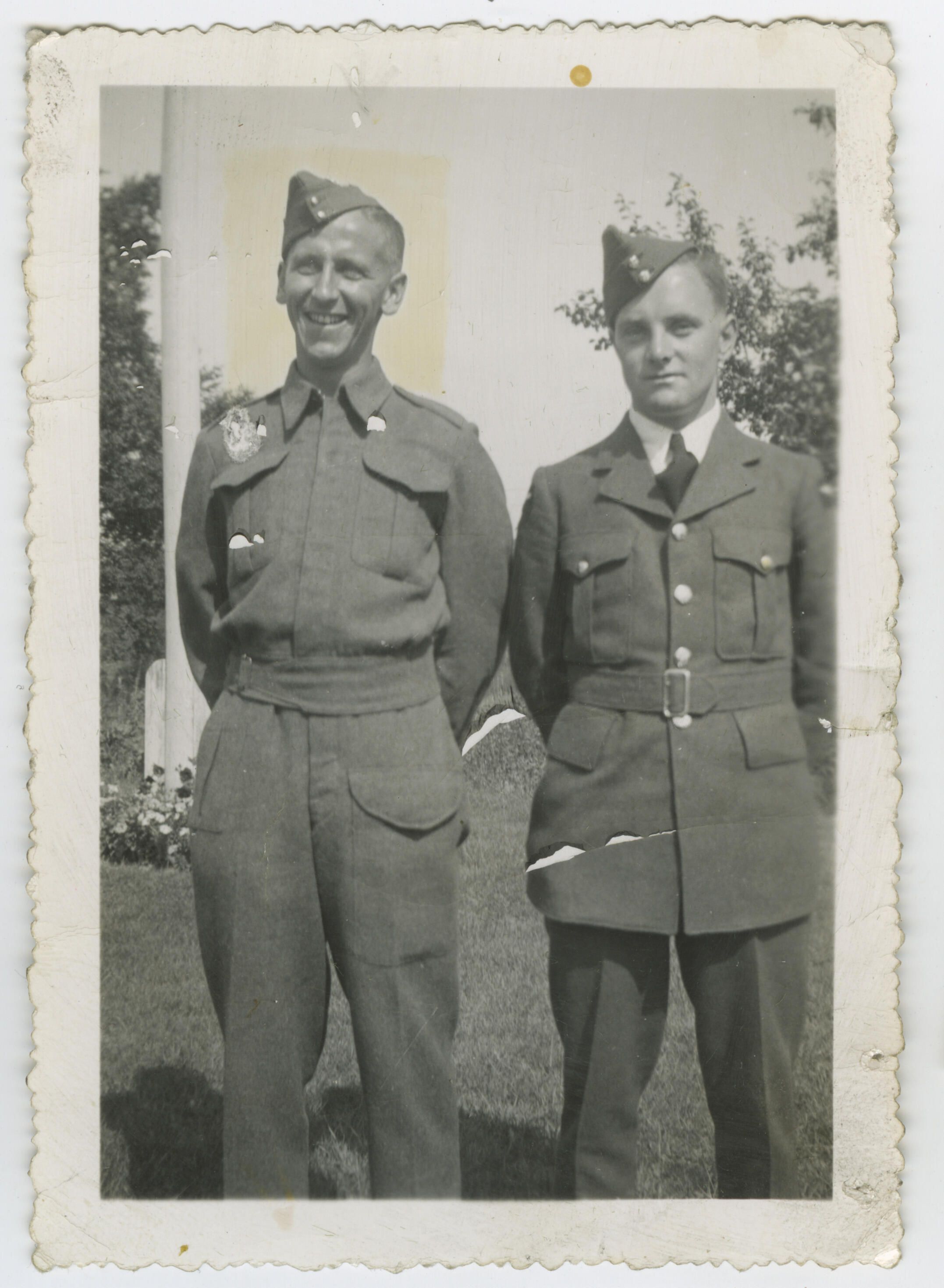 Sergeant L.G. Thompson of the 1st Bn. RMR, on the left, posing beside an unidentified airman, possibly a relative.Photograph Details