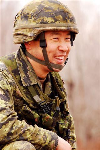 Portrait of Warrant Officer Derek Ho taken during an exercise at Camp Farnham, Quebec.Photograph Details