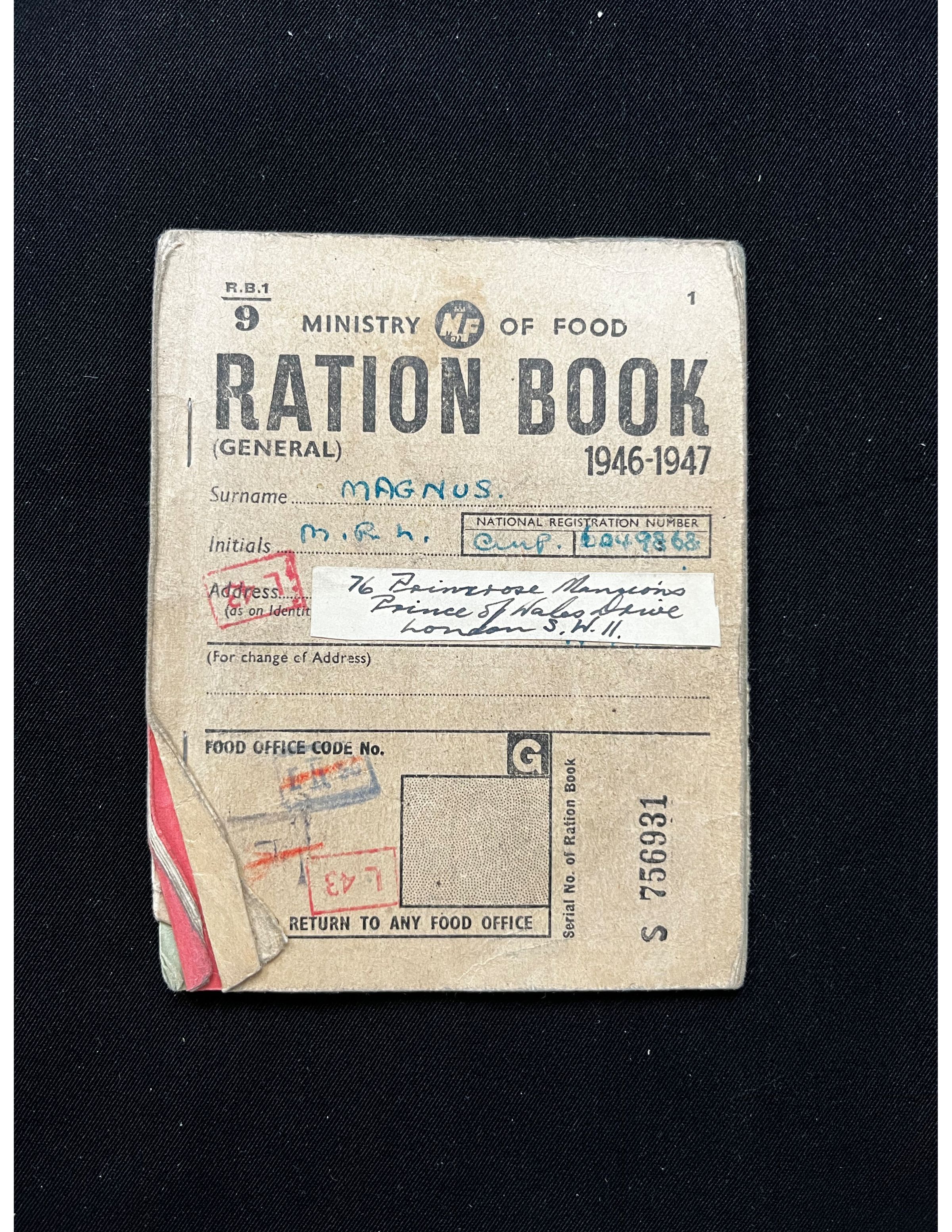 MAGNUS / M.R.H. / CMB / 6049868 / 76 PRIMROSE MANSIONS, PRINCE OF WALES DRIVE, LONDON, S.W.11