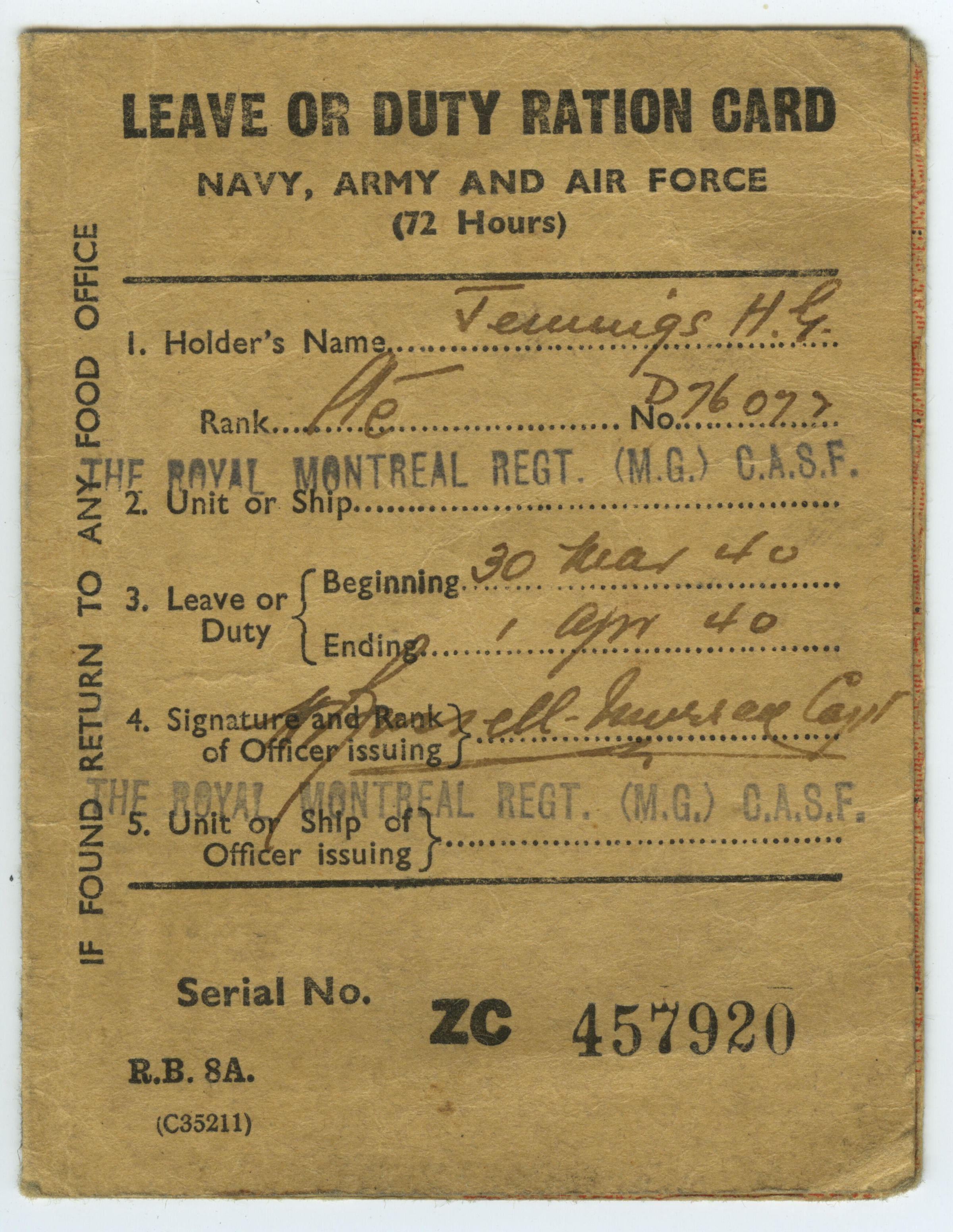 Light brown folded booklet. The cover is filled with personal information and inside there are unused coupons for various food products. The card was valid for 72 hours.