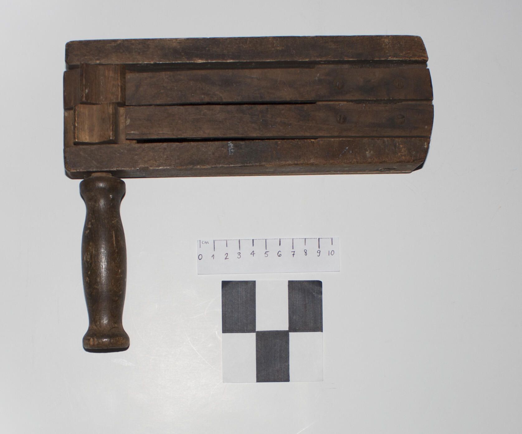 Alarm rattle made of wood. when spun, the rattles would turn and make a loud ratchet noise. They were used to sound the alarm , and announce gas attacks. On the back we can read the inscription : "D. L. Sector 42. 18 Quarry Rd". The rattle was probably owned by A. Parsons.Use