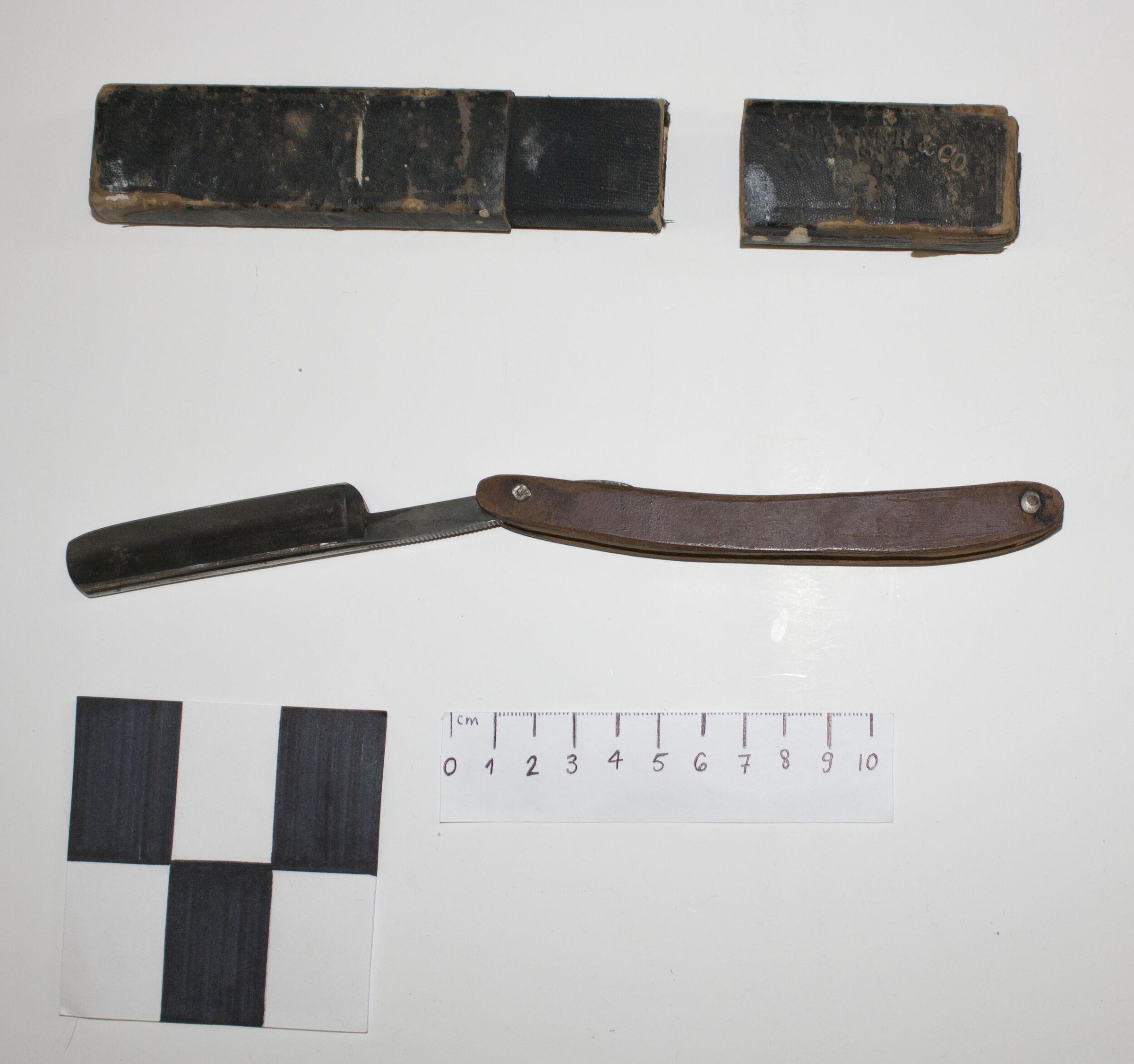 King Cutter brand strait blade razor with a brown handle and the original cardboard box. This style razor has been produced by the Boker Knife Manufactory of Solingen, Germany since 1869.Lexicon