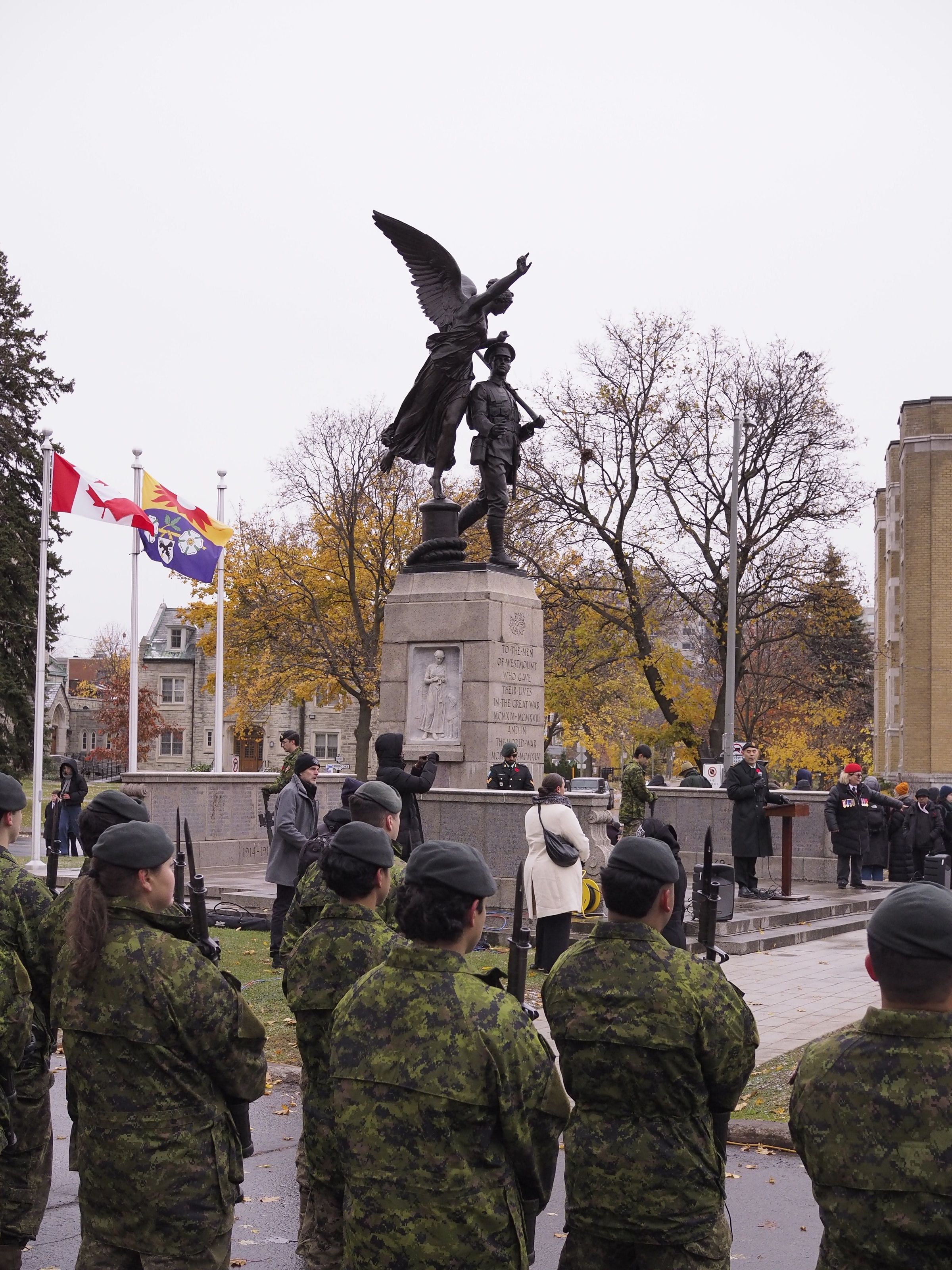 RMR soldiers at the Westmount Cenotaph for Remembrance Day.