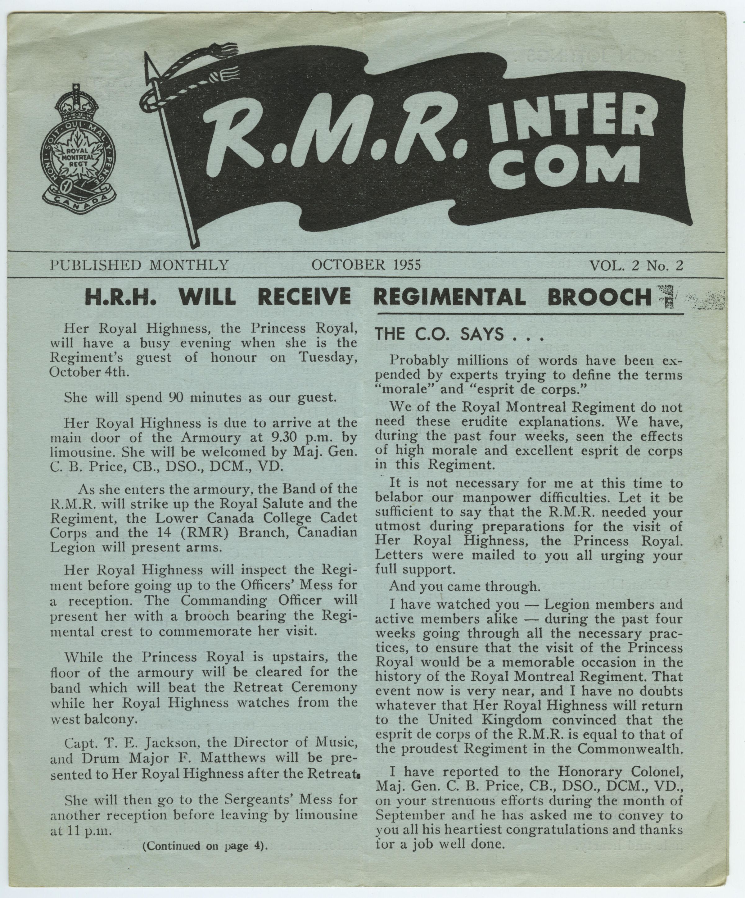 Linton, J. Douglas H., Thwaites, Arthur Percival, Lawson, Bruce, Mann, Wilfred Henry Stephen, "Wilf", McCullough, Virgil, Vass, David McDougall, Berard, Andre J., O'Shaughnessy, James R., Mary, Princess Royal and Countess of Harewood, Allen, C. F., Darvill, Charles A., Frampton, Leonard, Bremze, Alf, Whitehead, George Victor, Smith, Alfred, Turnbull, R., Frost, Reginald William, Pichette, A. H., Smith, J., Tough, John, Thompson, Harold J., Howell, William Percy, Pulling, Bill, Labelle, George W., Wheaton, Robert A., Brewer, George Bernard, Unsworth, J., Jackson, Thomas Edward, Crompton, Gladney, Wheatley, George Joseph, Martin, Pat, Harris, H., Lyons, John, Price, Charles Basil, Downey, Jim, Lower Canada College Cadet Corps, Abrams, John Philip, Housing, C., Parker, Endersby, Edward A., Gougeon, William J., Handcock, Arthur, Kitson, The Royal Montreal Regiment Association, Branch 14, Royal Canadian Legion, Wall, Frank, Carpenter, William Henry, Labelle, Bernard E., Overing, Robert Laurence Reginald, Matthews, Frank G., Goldstein, Harold, Gaylor, Adam Smith, Hawthorne, David, Evans, Frank, Green, William, Baines, Stanley Lawrence, Hall, Tom, Woodman, Fred J. H., DeWitt, Don, Drake, Robin, Fisher, Harold, Pratt, Clifford James, Gauthier, Polly, Massey, Robert Bruce, McCarthy, Boudreau, Clarence, Lorin, Gerry, Rice, Edward A., Kowalski, Waclaw, Spark, Peter Arthur, MacDonald, David D., Campbell, Henry H., Liddell, Stuart, Wilson, Buster, Peebles, David, Bolduc, Ernest, Dalgleish, Gordon Grant, O'Brien, Lou, Carter, R. J., Woodburn, Bob, Kelly, Thomas Michael, Gibb, Howard F.