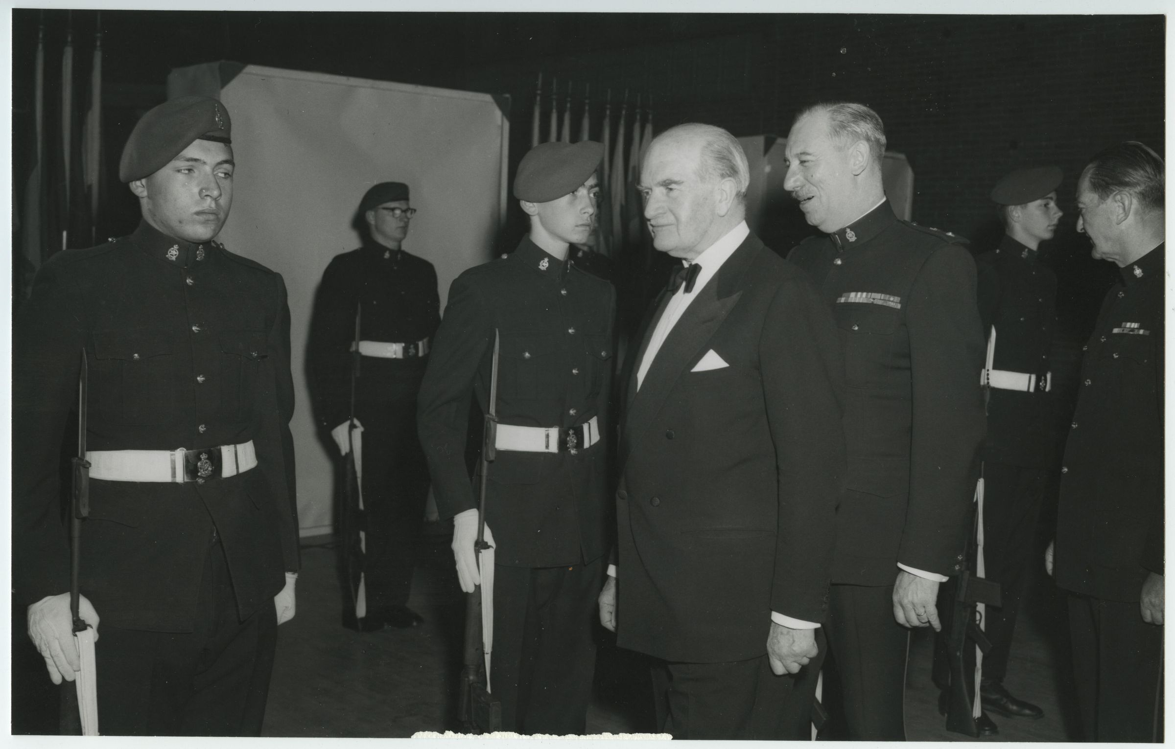 Field Marshal Slim was visiting Montreal on April 20th, 1963 as a non-executive director of Imperial Chemical Industries Ltd. of Britain and The Royal Montreal Regiment took the occasion to entertain him at a formal Mess Dinner in his honour held on the Armoury floor.