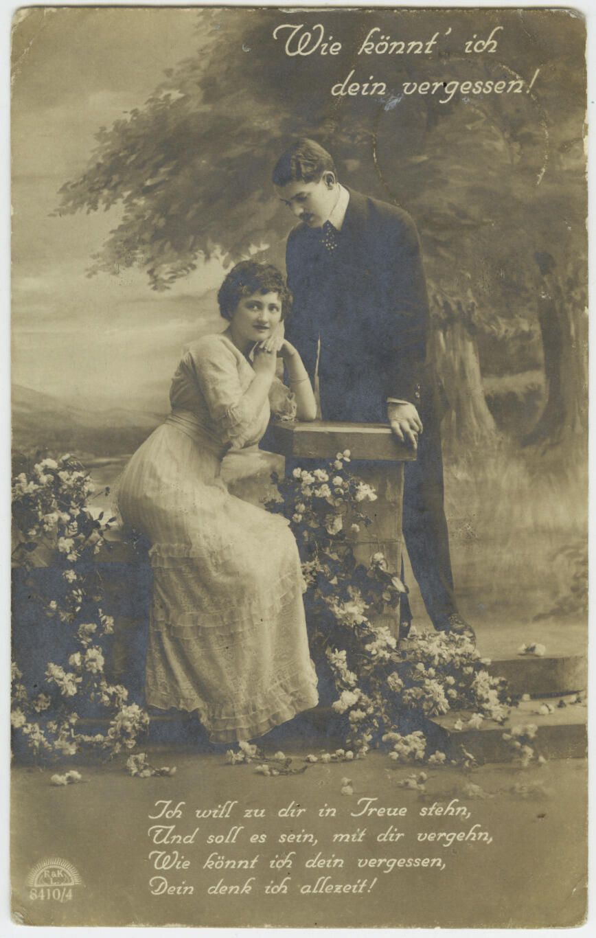 "Wie Konnt ich dien Vergessen !"/ "Ich will zu dir in Treu stehn Und soll es sein , mit dir vergehn, We konnt ich dein vergessen, Dien denk ich allezeit !" Translation: "How could I forget?" / "I want to stay in your trust. And if it should be, go away with you, I could forget you, I always think of you!"