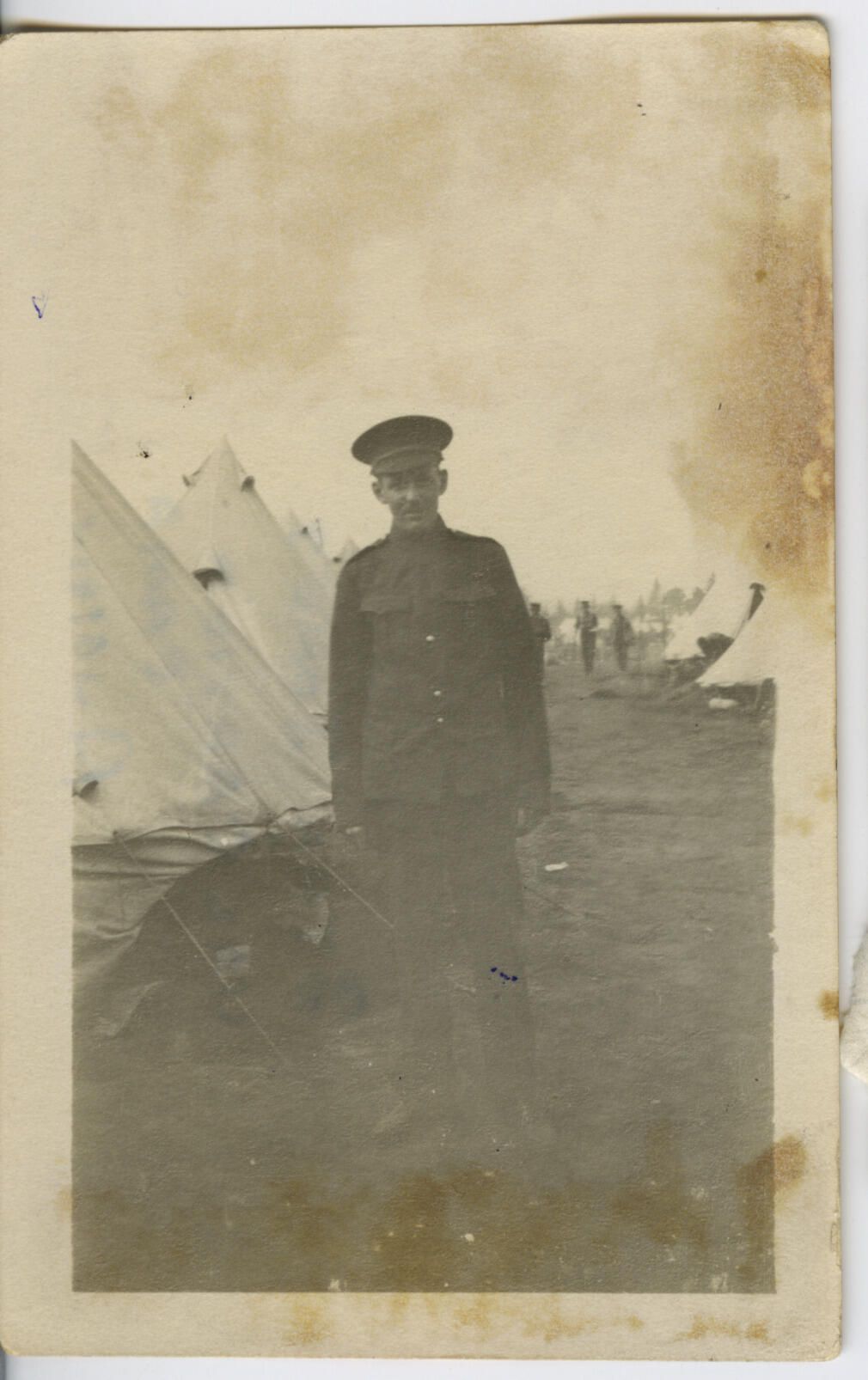 Verso; handwritten; blue ink: "Stan Jones/ Valcartier Camp/ Aug 1914"Lexicon