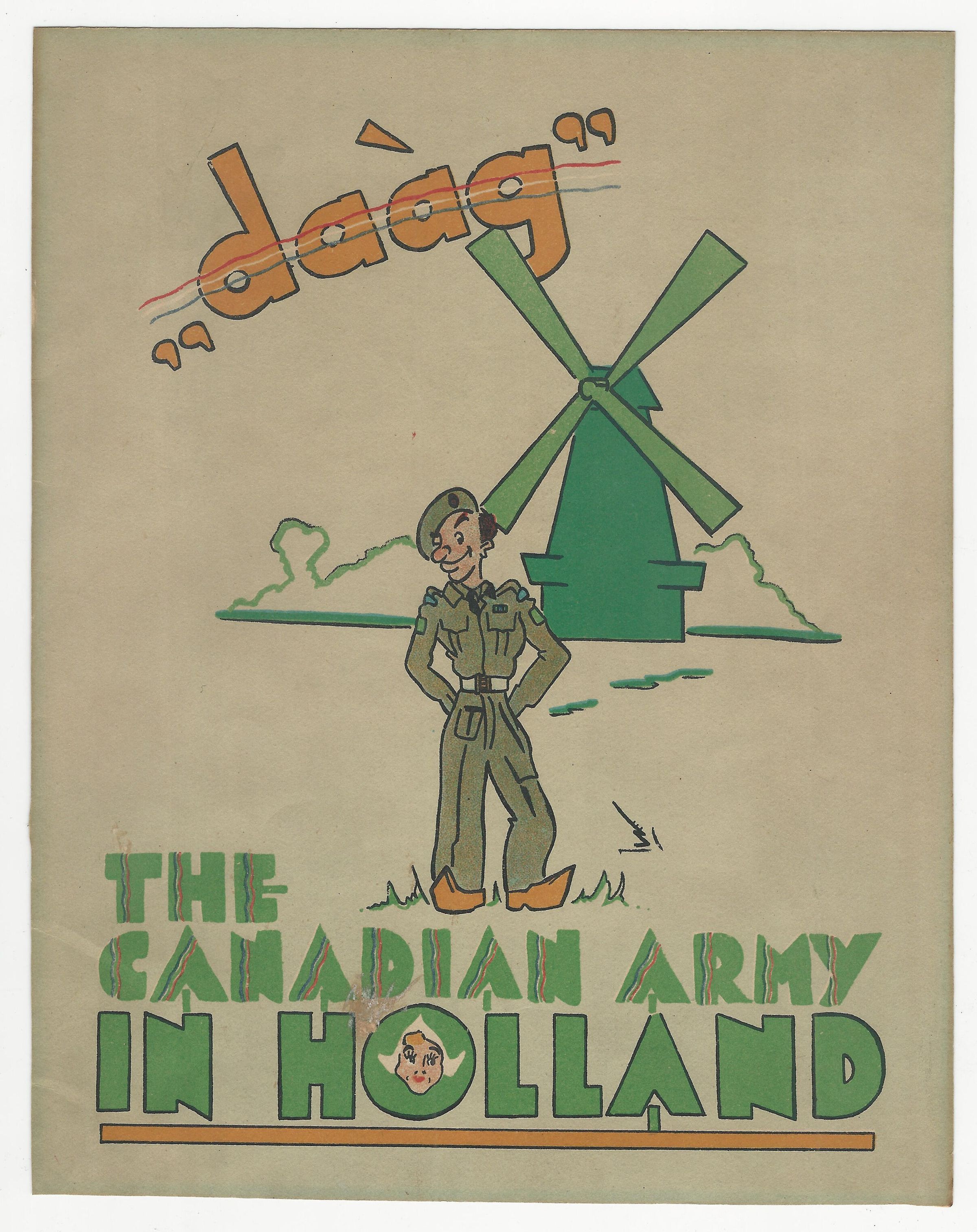 A copy of ''Daàg'' The Canadian Army in Holland a 36 page illustrated booklet produced to facilitate contact between the Canadian forces and civilians in the Netherlands at the end of World War II. Included are 16 brightly colored full-page plates with drawings by Jan Nieuwenhuys. Each illustrates activities of the Canadian army in Holland in the first few months after the liberation of the country. "Daàg'' is an expression used to say ''Have a Nice Day".Publication Details