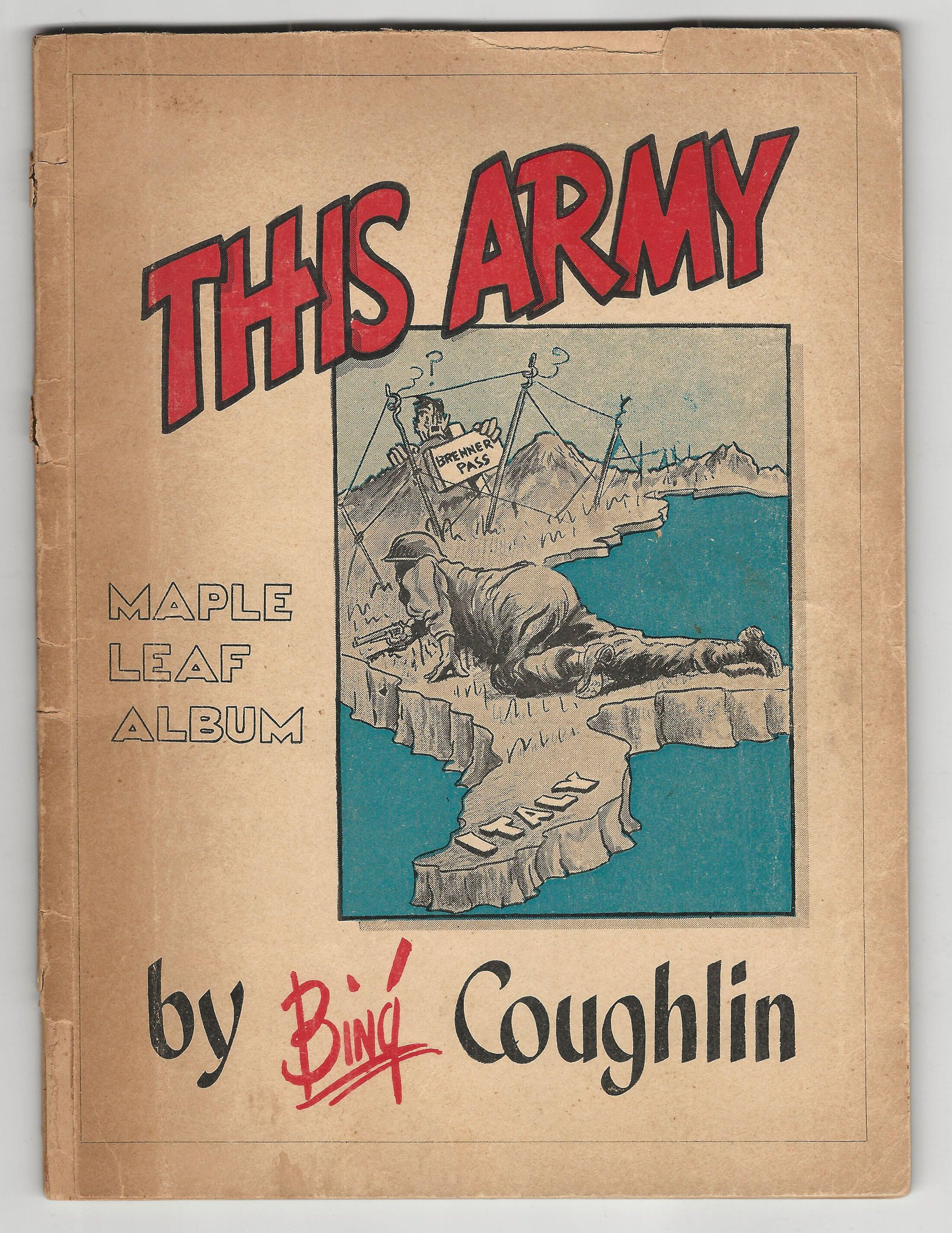 William Garnet "Bing" Coughlin was a Canadian born cartoonist who served in the Canadian Army during World War II. He started to draw military-related cartoons during the invasion of Sicily. His drawings, which were featured in the magazine The Maple Leaf, showed the daily life of soldiers and quickly became popular with the Canadian troops. “Bing” as he signed himself became the voice of Canadian servicemen.