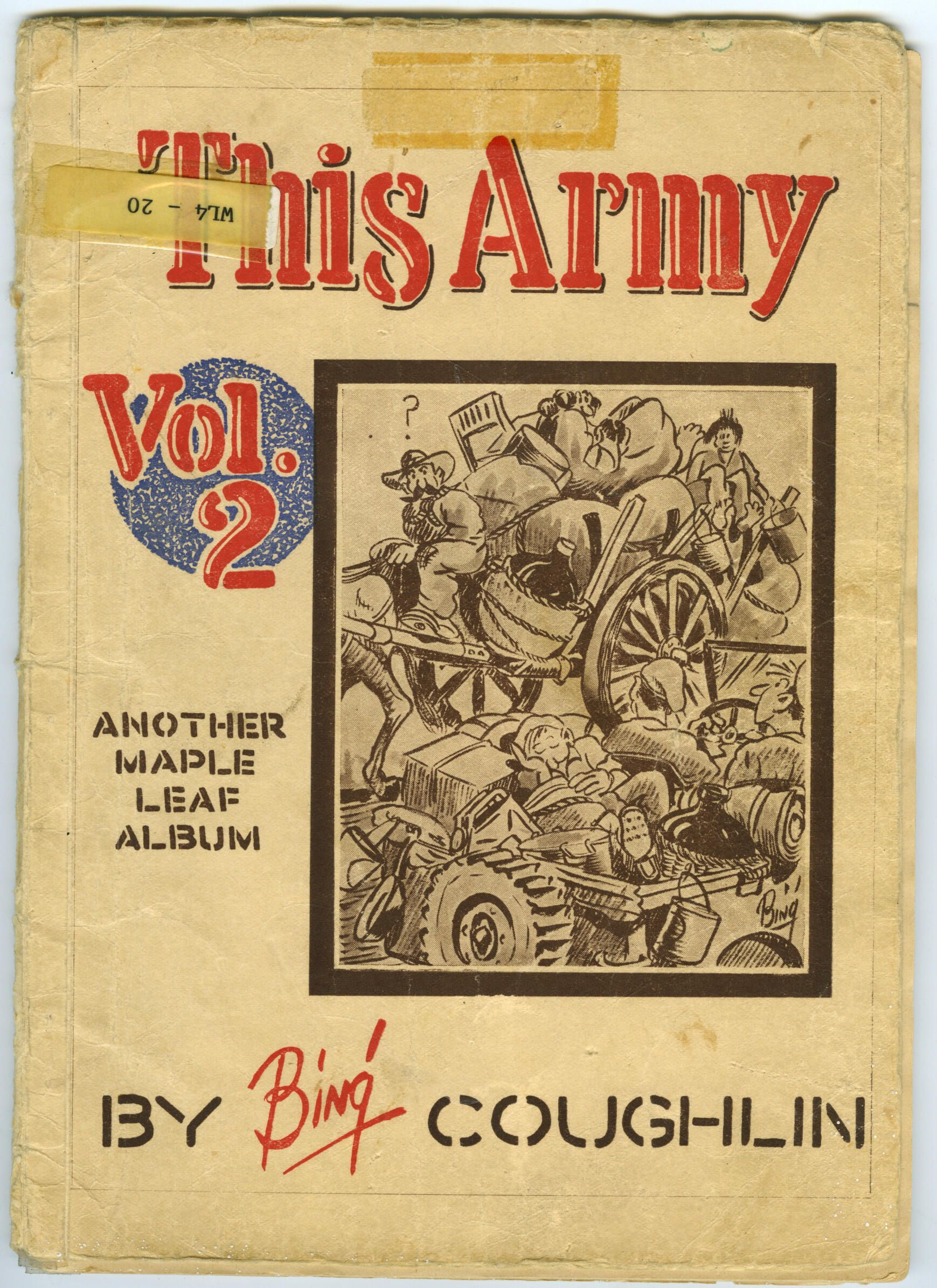 Volume 2 of "This Army," a 63 page soft cover publication with a large number of comic strips illustrated by "Bing" Coughlin. The carton on the cover shows a soldier sleeping in the back of a jeep while a refugee with his horse drawn cart piled high passes by.Lexicon