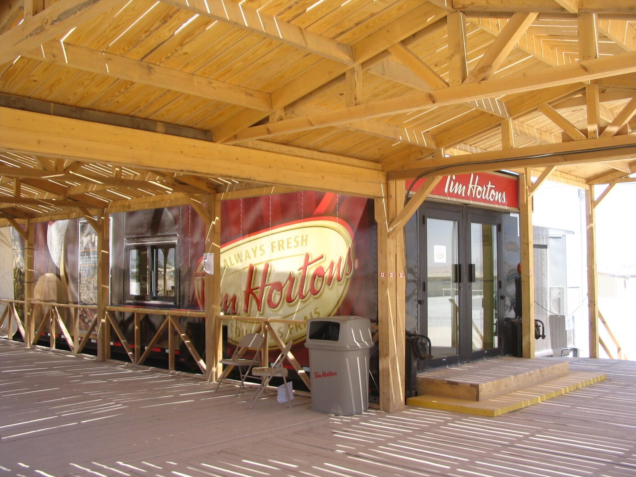Serving as a morale booster to soldiers on the front lines, the famous Kandahar's Tim Hortons concession counter was operated on the Boardwalk in Kandahar Airfield. It was operational from 2006 to 2014 and some 323 Canadian civilians worked at this Tim Hortons. They would serve for a total of six months at a time and they were paid about around $20,000 for their tour.