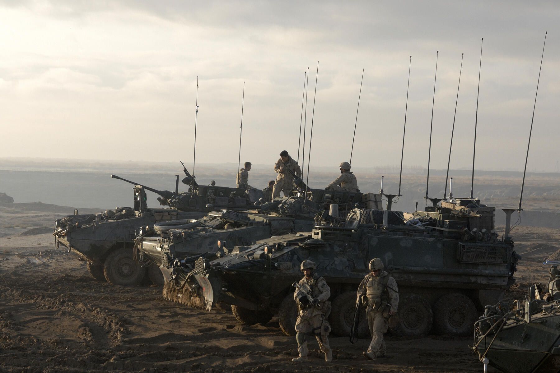 A Canadian patrol with a mix of LAV III and a Bison Recovery Vehicle.