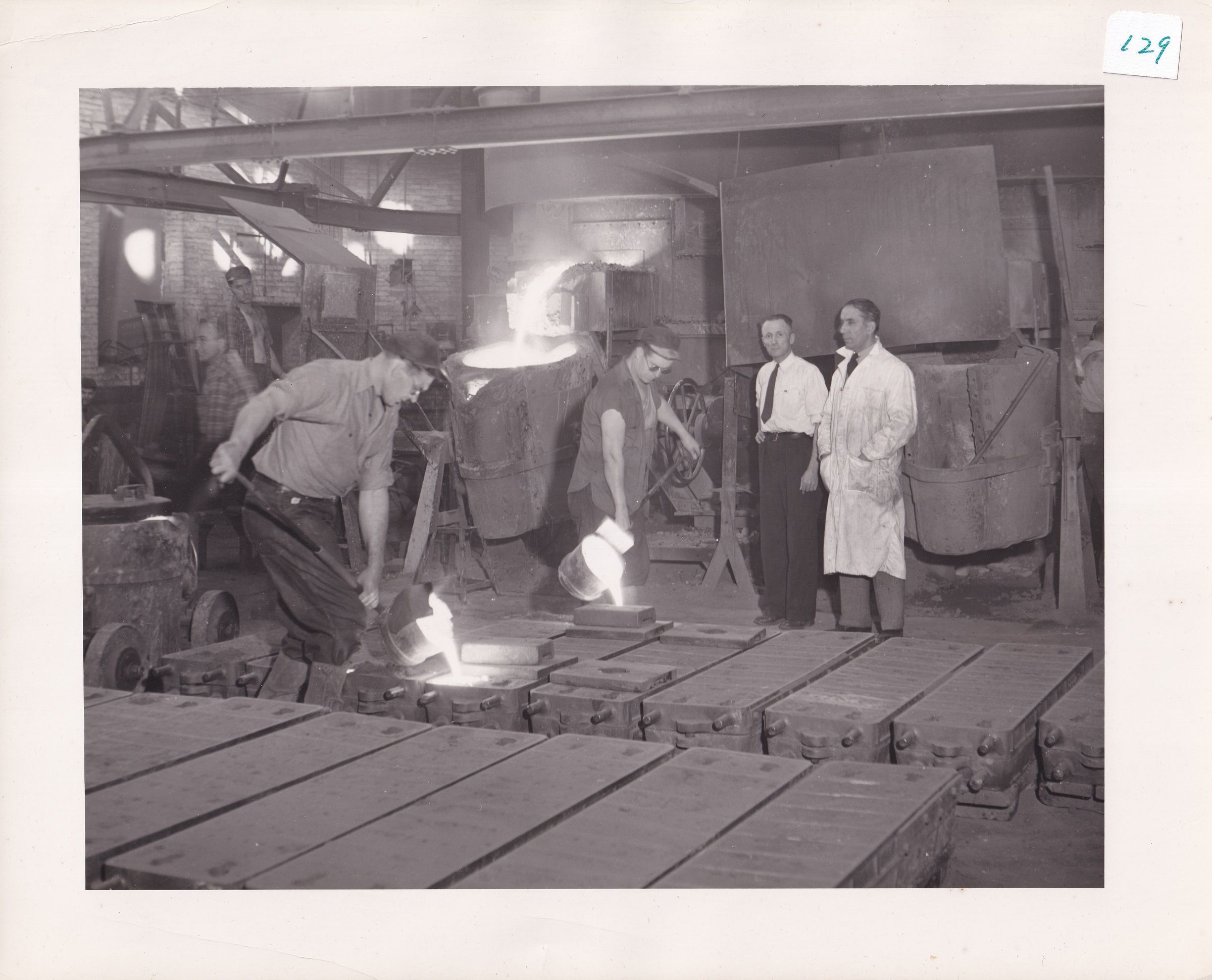 Workers in the Saco-Lowell Foundry, 1942, part of the Vasco Da Gama Project to reclaim scrap metal during World War 2.Made/Created