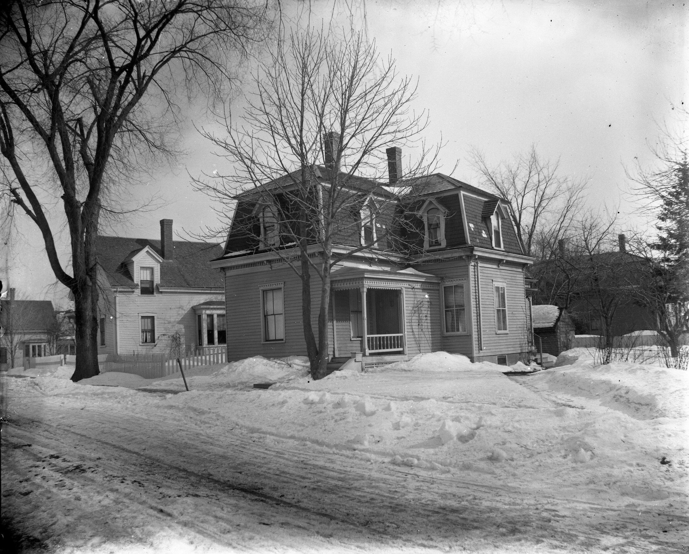 Glass plate negative photo of Hill Street in, Saco, ME, circa 1905. This is one of the two Young family houses on Hill Street.