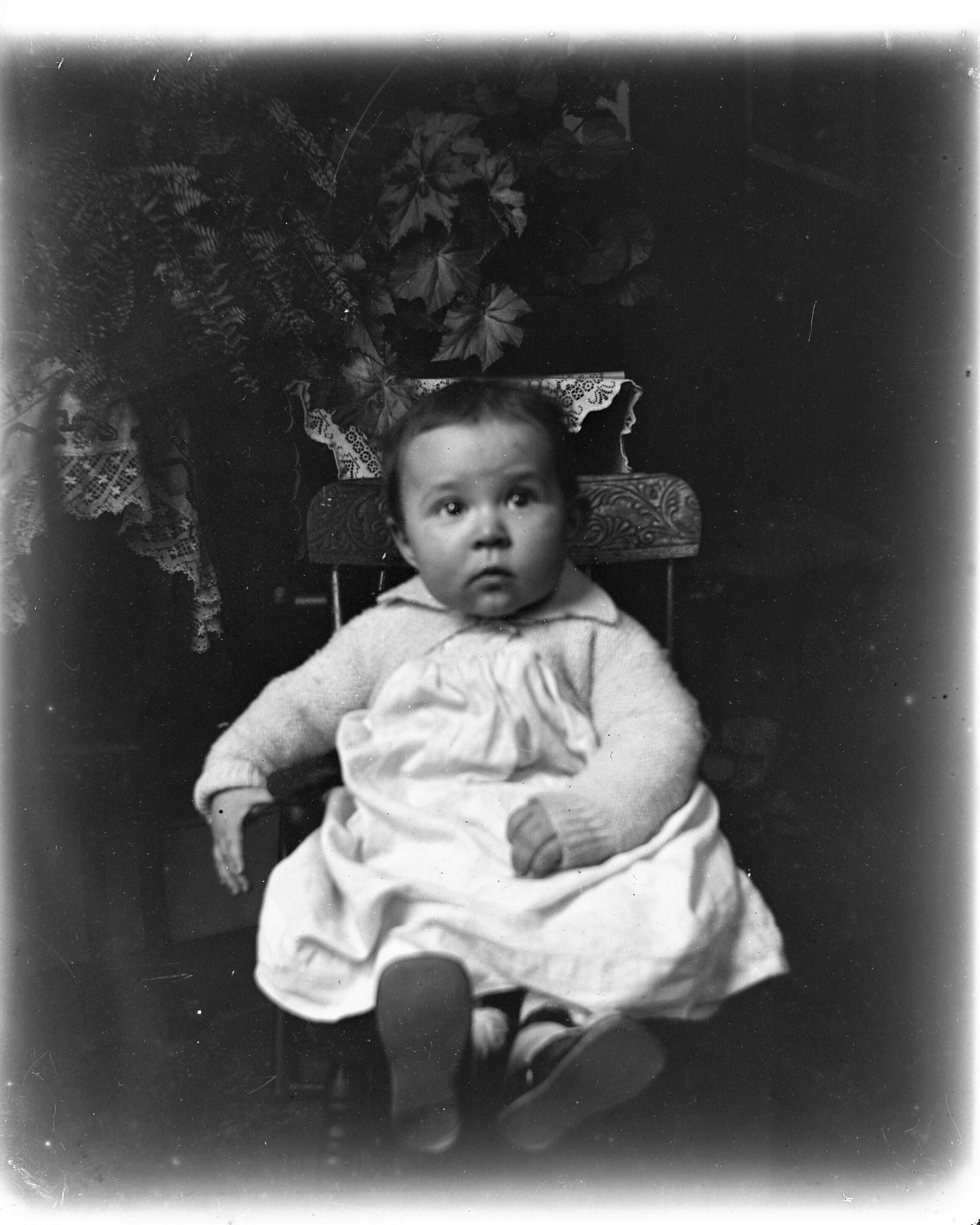 Glass plate negative photo of Beatrice Caroline Hobbs (1921 - 2012) as an infant.