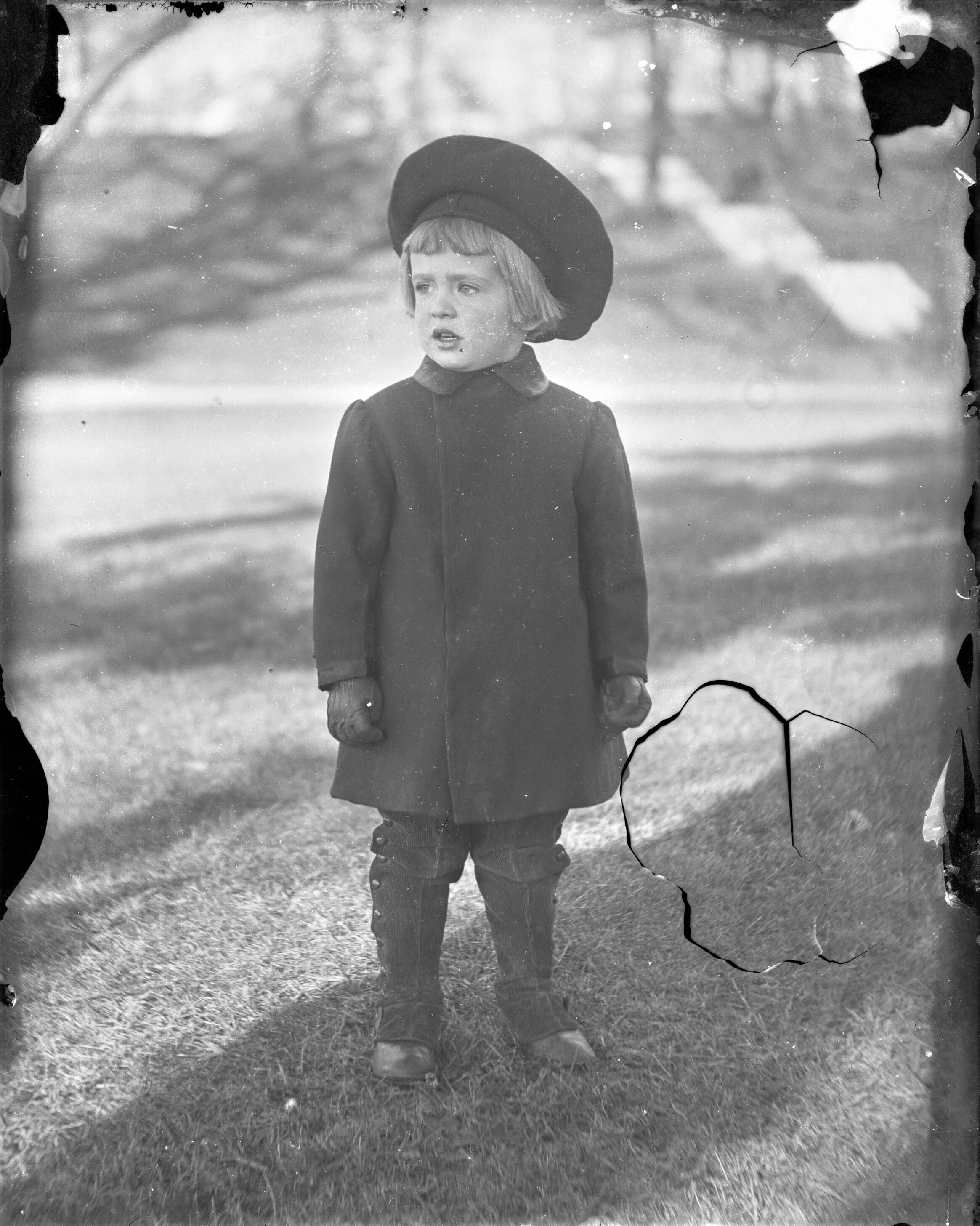 Glass plate negative photo of Herbert W. Bradbury wearing a hat and coat.